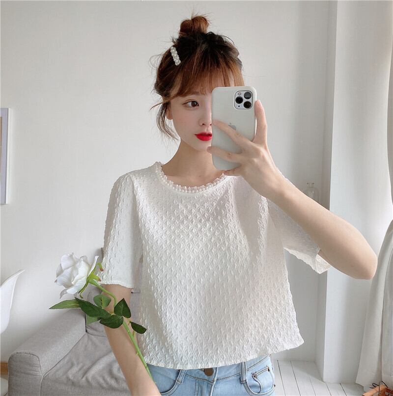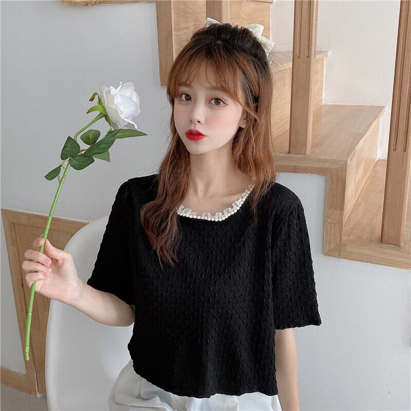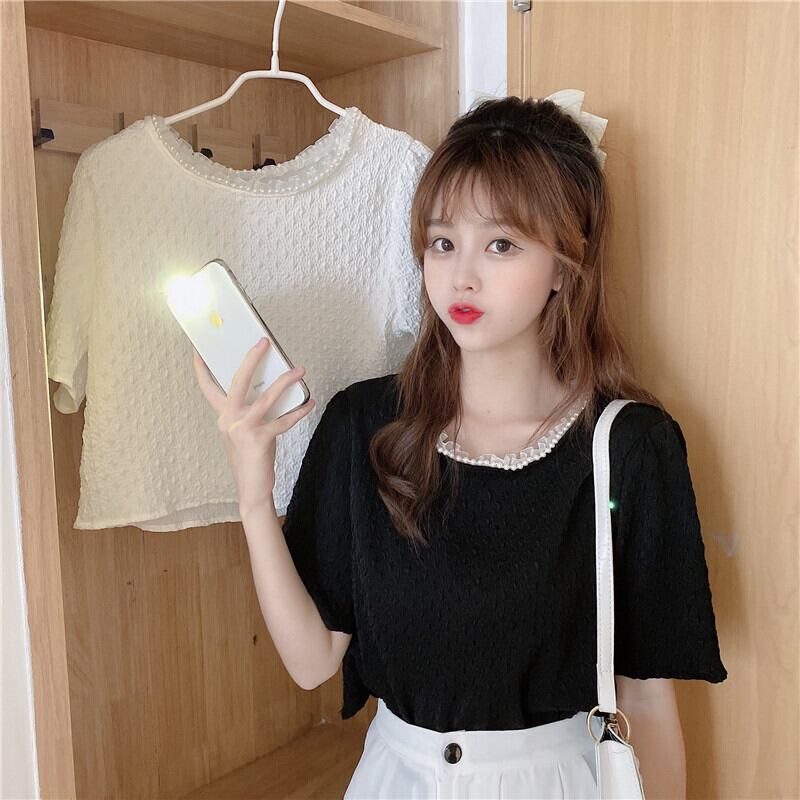 ✞ パールラウンドネックショートシャツブラウス スウィート 真珠 ✞ゴスロリ SM ミリ 甘ロリ クラロリ 和ロリ エレガント 黒ロリ 姫ロリ 華ロリ BB-BB7471136