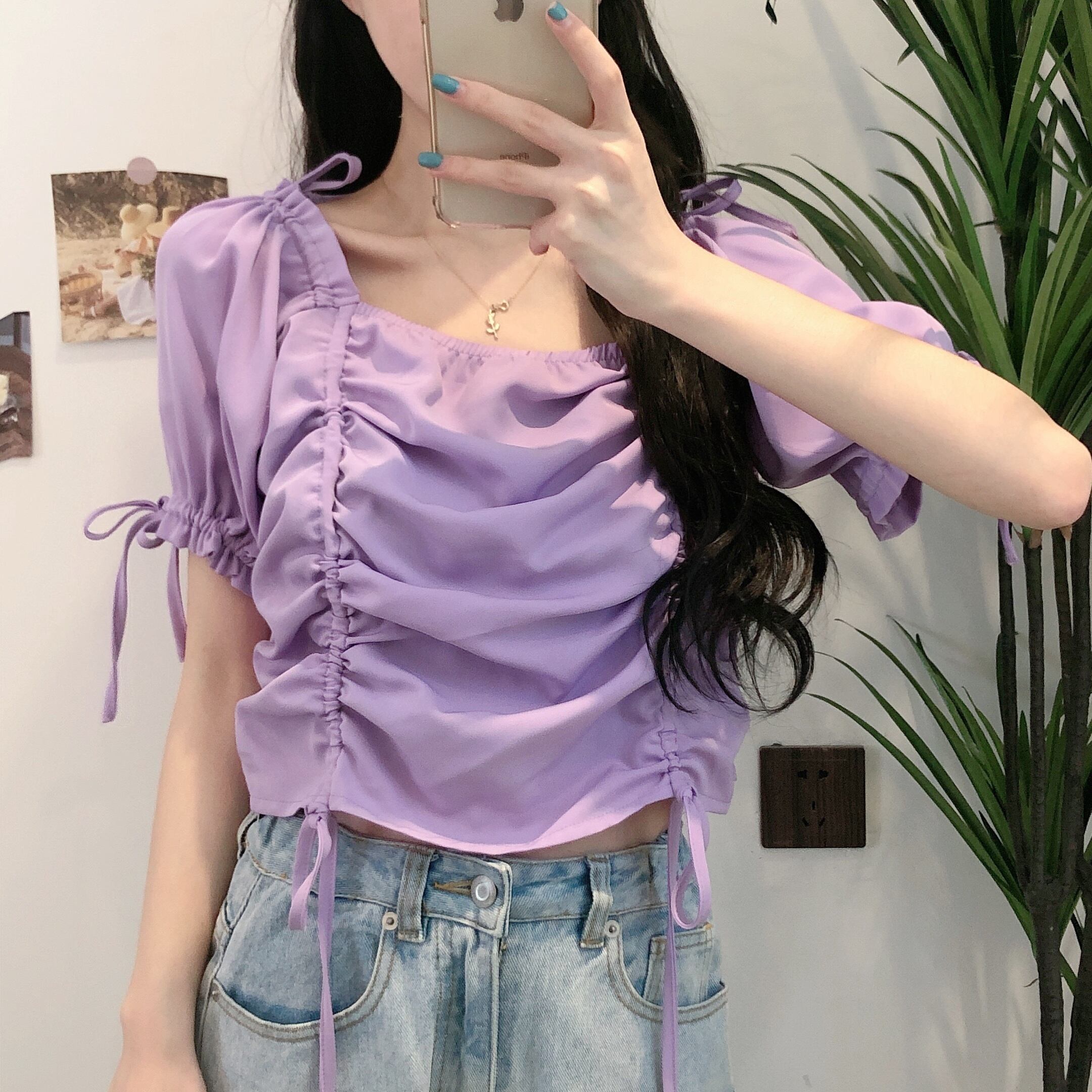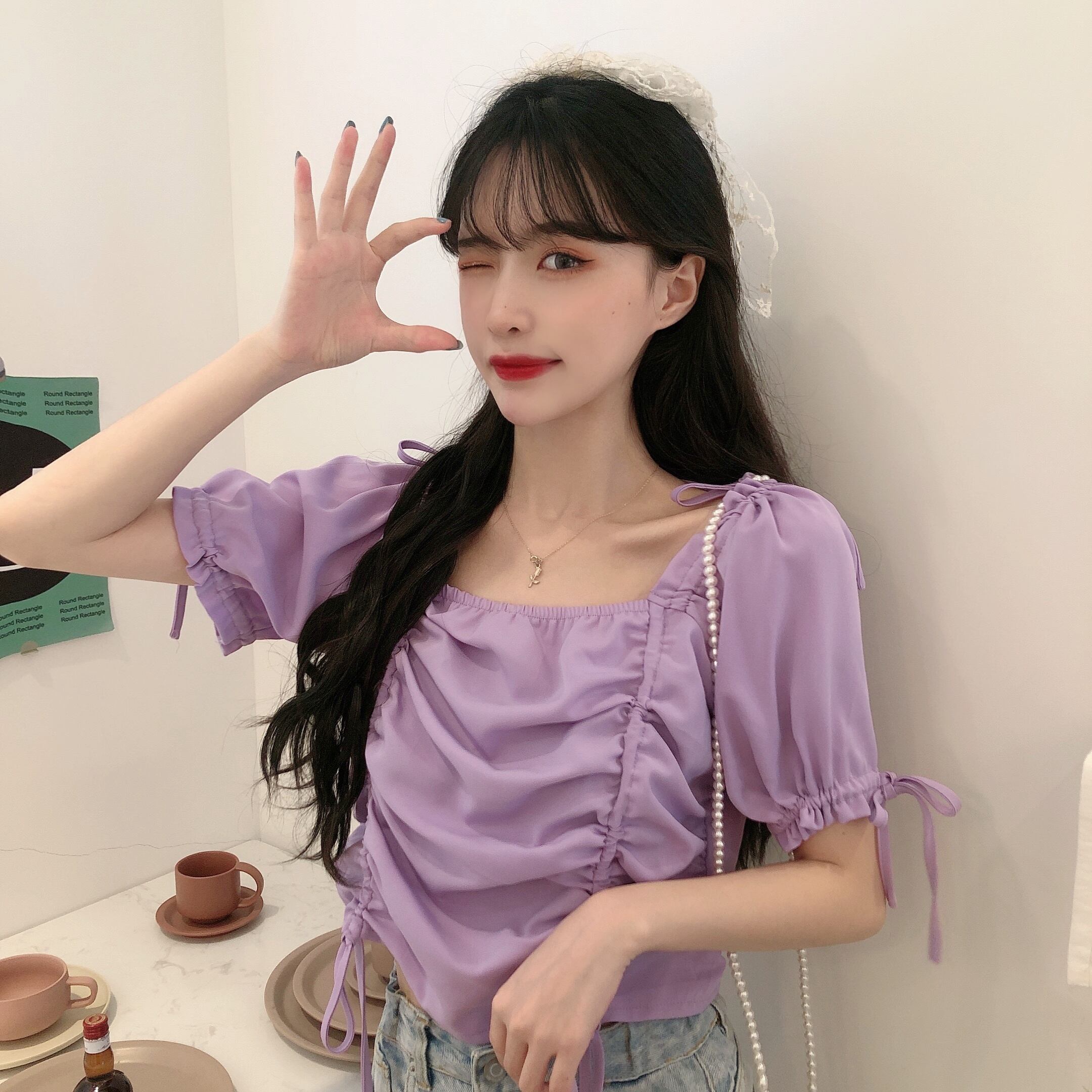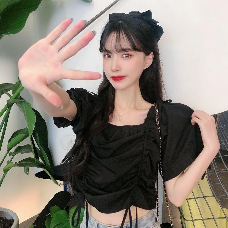 ✞ プリーツギャザーリボン♥カワイイ♥シャツブラウストップス スウィート スクウェア ✞ゴスロリ SM ミリ 甘ロリ クラロリ 和ロリ エレガント 黒ロリ 姫ロリ 華ロリ BB-BB7060720