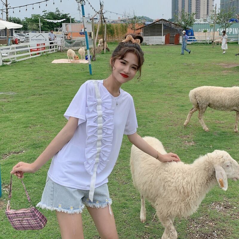 ✞ リボンラウンドネック♥カワイイ♥Tシャツ シャツブラウス スウィート ✞ゴスロリ SM ミリ 甘ロリ クラロリ 和ロリ エレガント 黒ロリ 姫ロリ 華ロリ BB-BB1895731