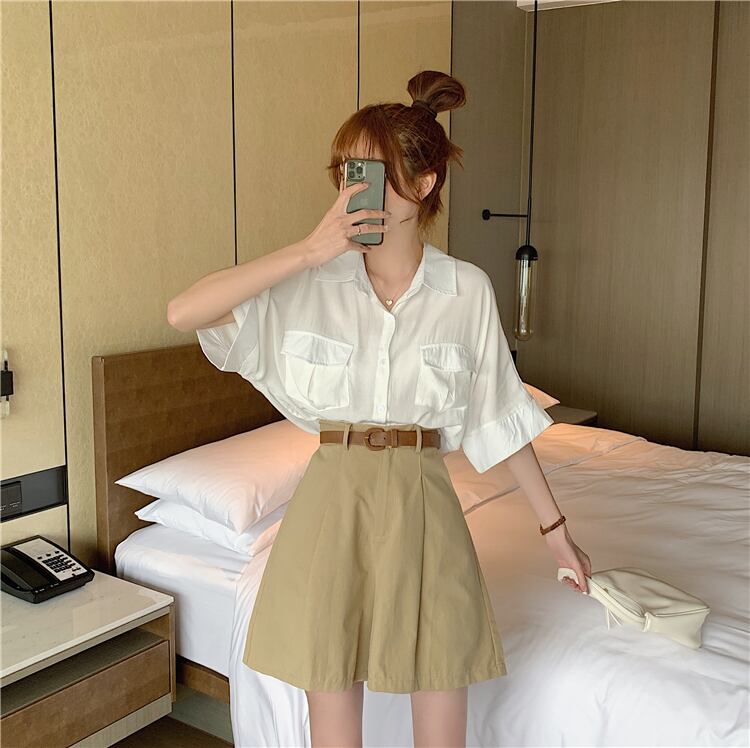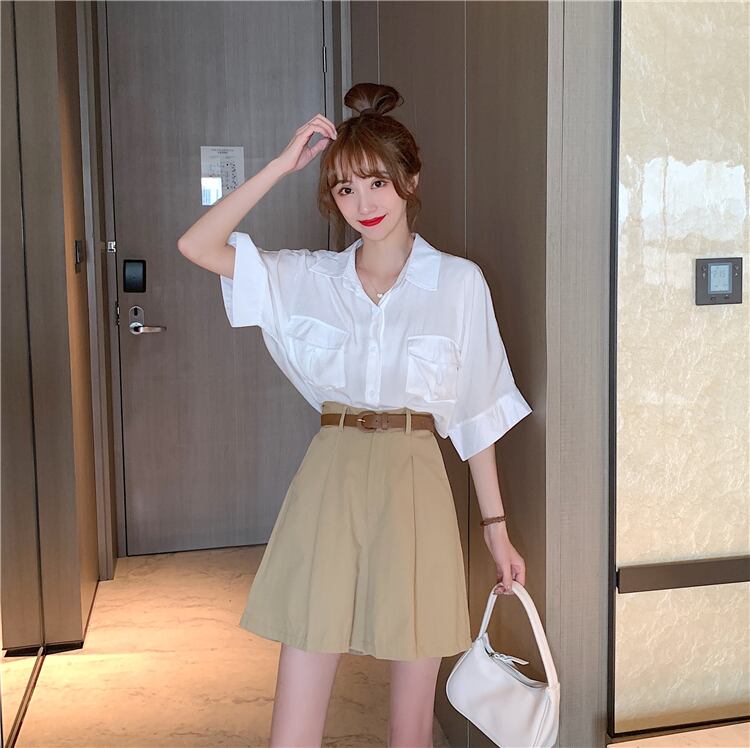 ✞ きれいめ☆半袖スリーブシャツブラウス♥カワイイ♥ワイドレッグカジュアルパンツ ショート ✞ゴスロリ SM ミリ 甘ロリ クラロリ 和ロリ エレガント 黒ロリ 姫ロリ 華ロリ BB-BB5578046