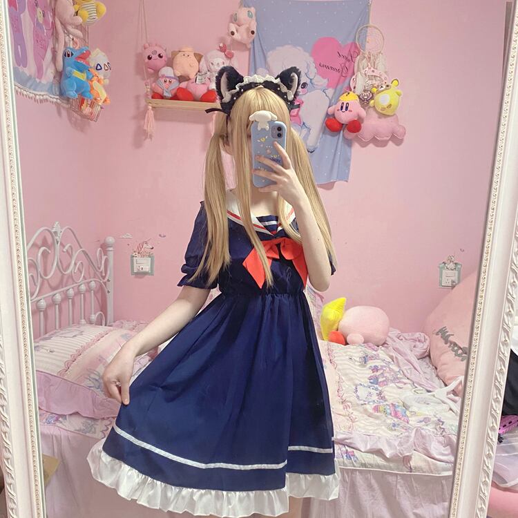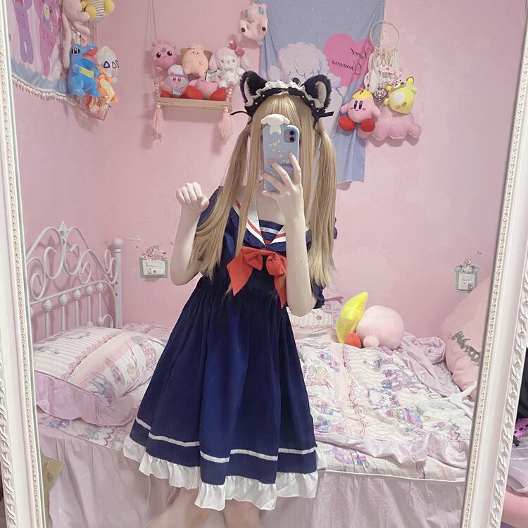 ✞ 半袖スリーブリボンネイビー ショート スウィート ✞ゴスロリ SM ミリ 甘ロリ クラロリ 和ロリ エレガント 黒ロリ 姫ロリ 華ロリ BB-BB3445962