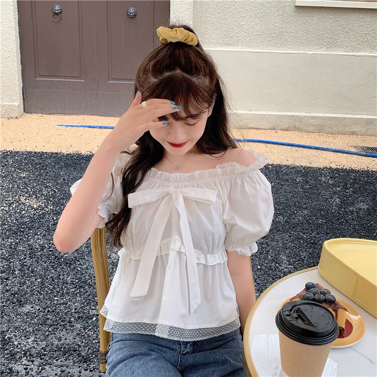 ✞ スリーブレースリボンショートシャツブラウス スウィート ステッチ ✞ゴスロリ SM ミリ 甘ロリ クラロリ 和ロリ エレガント 黒ロリ 姫ロリ 華ロリ BB-BB2936383