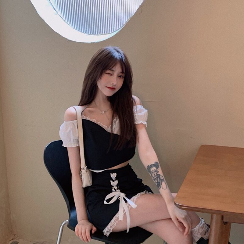 ✞ スタンダードカラーショートトップス クロスAラインスカート レトロ オフショルダー ✞ゴスロリ SM ミリ 甘ロリ クラロリ 和ロリ エレガント 黒ロリ 姫ロリ 華ロリ BB-BB3077448