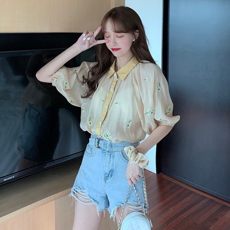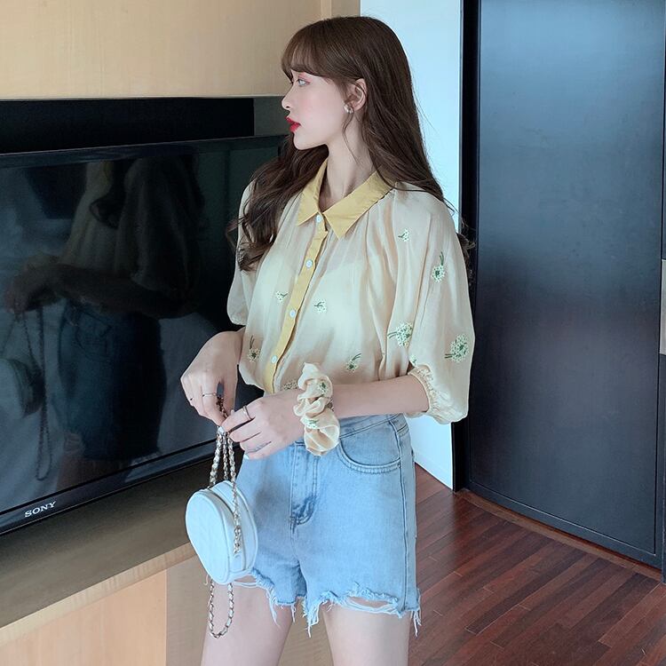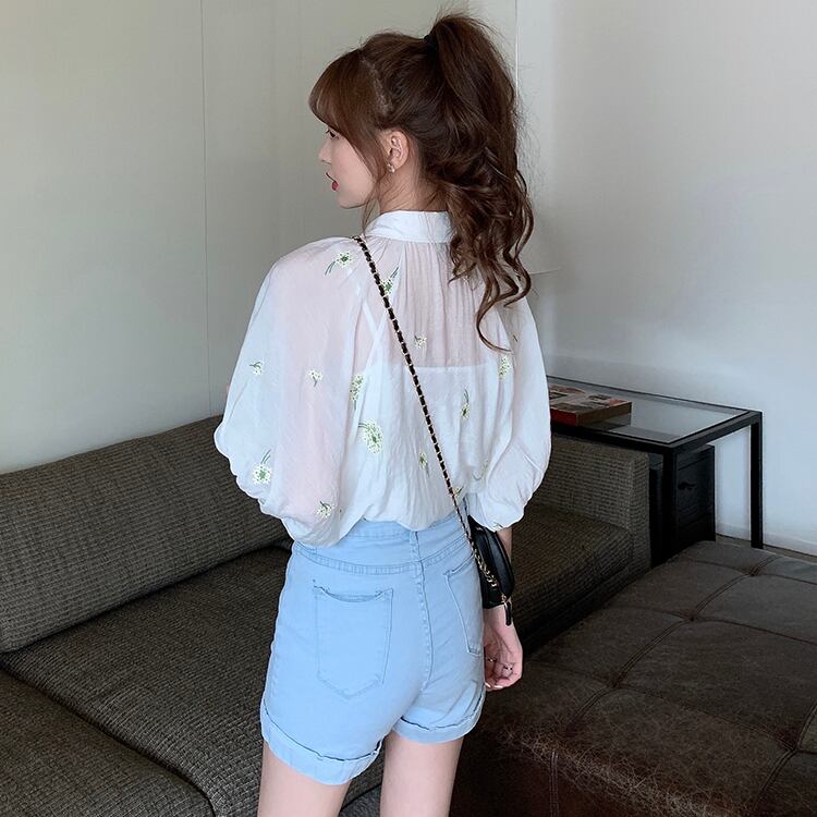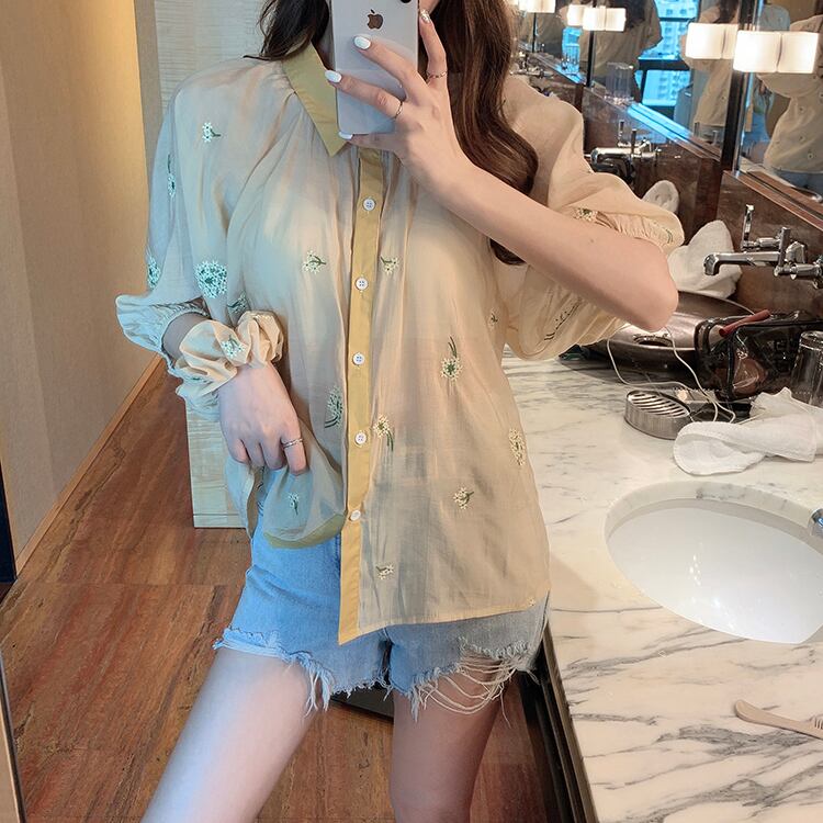 ✞ スリーブ花柄刺繍シャツブラウス フラワーデザイン ✞ゴスロリ SM ミリ 甘ロリ クラロリ 和ロリ エレガント 黒ロリ 姫ロリ 華ロリ BB-BB4909817