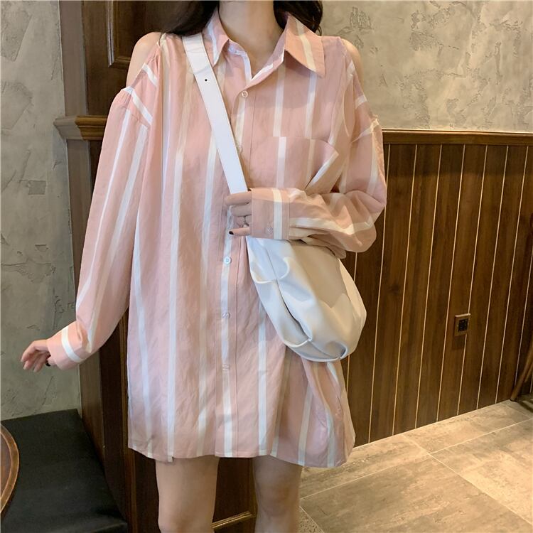 ✞ スタンダードストライプシャツブラウスブラウス ロング レトロ ✞ゴスロリ SM ミリ 甘ロリ クラロリ 和ロリ エレガント 黒ロリ 姫ロリ 華ロリ BB-BB9324071