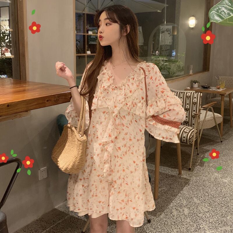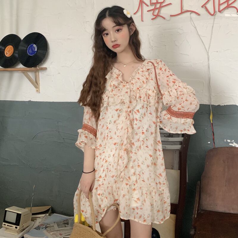 ✞ スタンダード花柄Vネックスカート シフォン レトロ スウィート ✞ゴスロリ SM ミリ 甘ロリ クラロリ 和ロリ エレガント 黒ロリ 姫ロリ 華ロリ BB-BB6016479