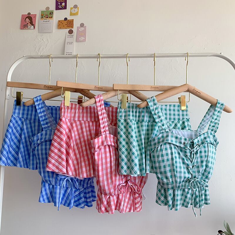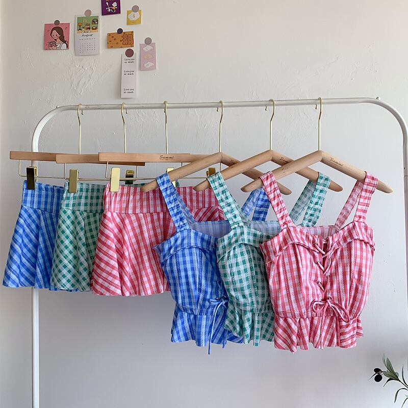 色:フロントストラップ付き水着,ブルーグリッドフロントストラップスイムスーツ,グリーングリッドフロントストラップスイムスーツ