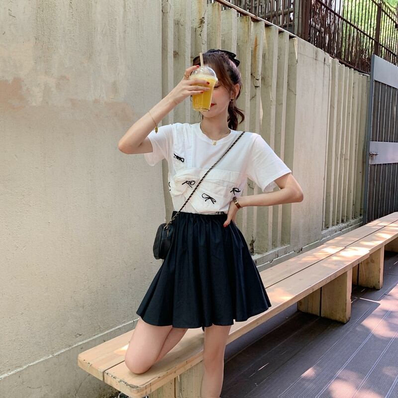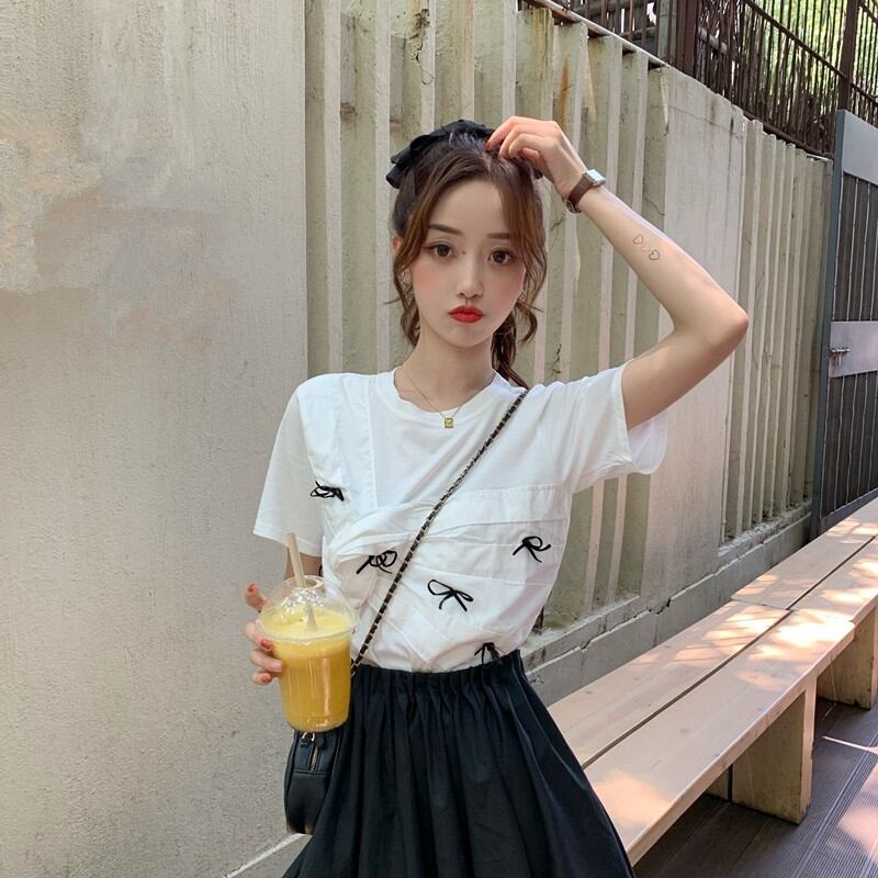 ✞ Tシャツ シャツブラウスラウンドネックリボン半袖スリーブ ショート スウィート ステッチ ✞ゴスロリ SM ミリ 甘ロリ クラロリ 和ロリ エレガント 黒ロリ 姫ロリ 華ロリ BB-BB4908877