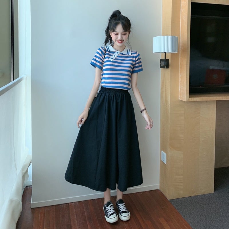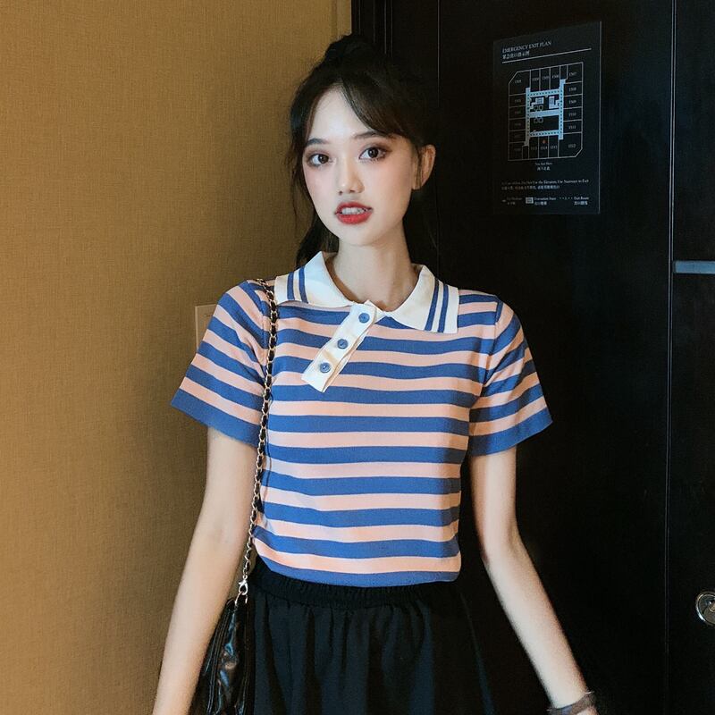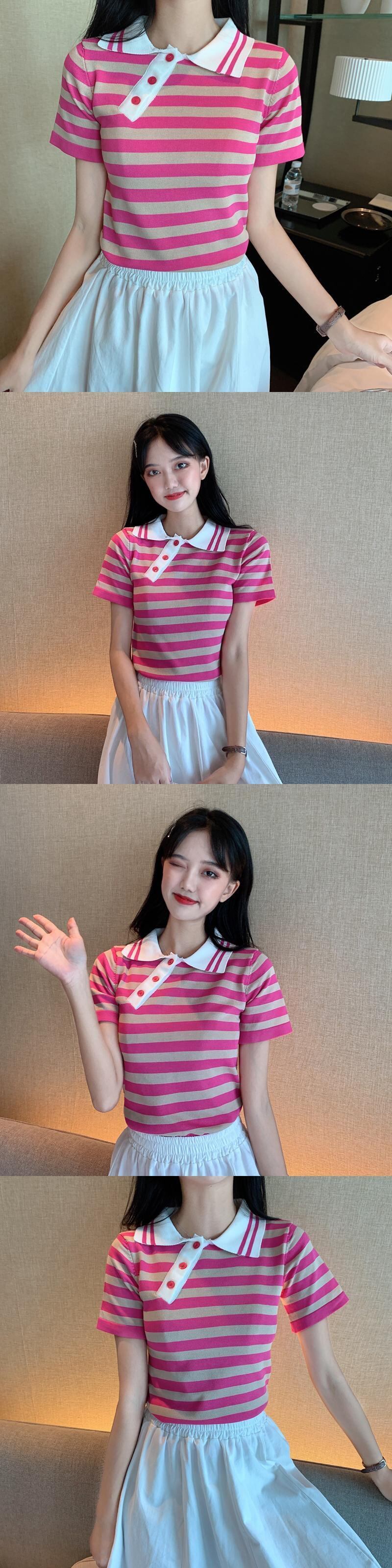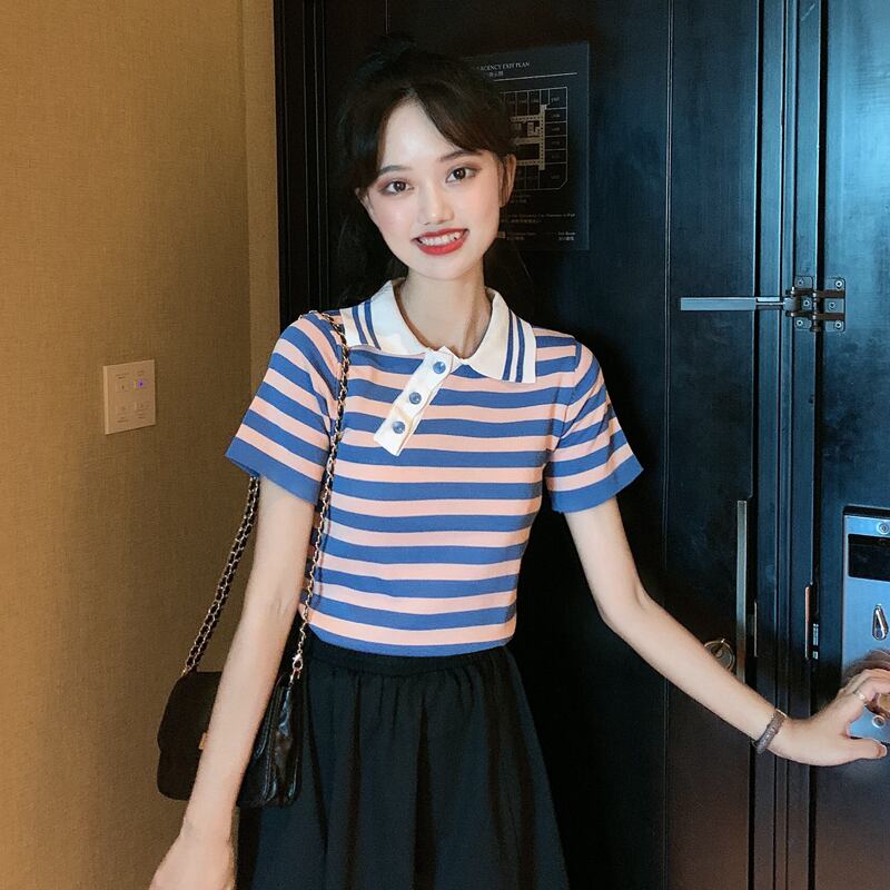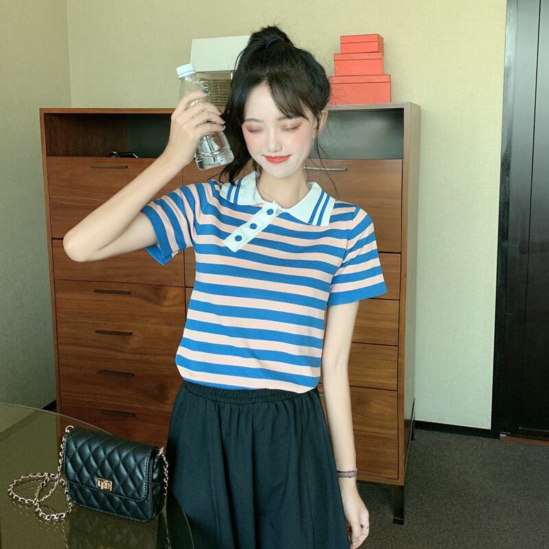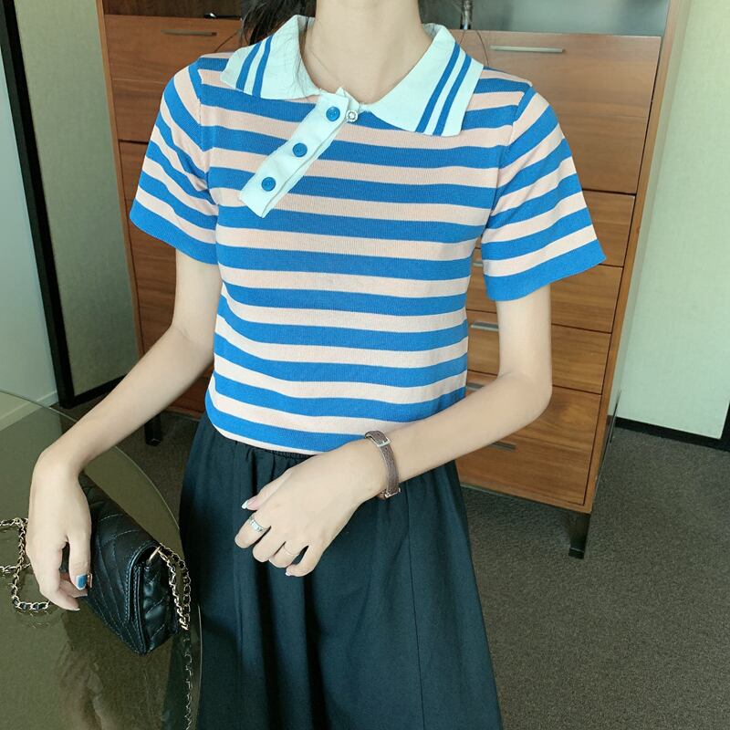 ✞ きれいめ☆ストライプスリムショートTシャツ シャツブラウス スウィート ✞ゴスロリ SM ミリ 甘ロリ クラロリ 和ロリ エレガント 黒ロリ 姫ロリ 華ロリ BB-BB1422459