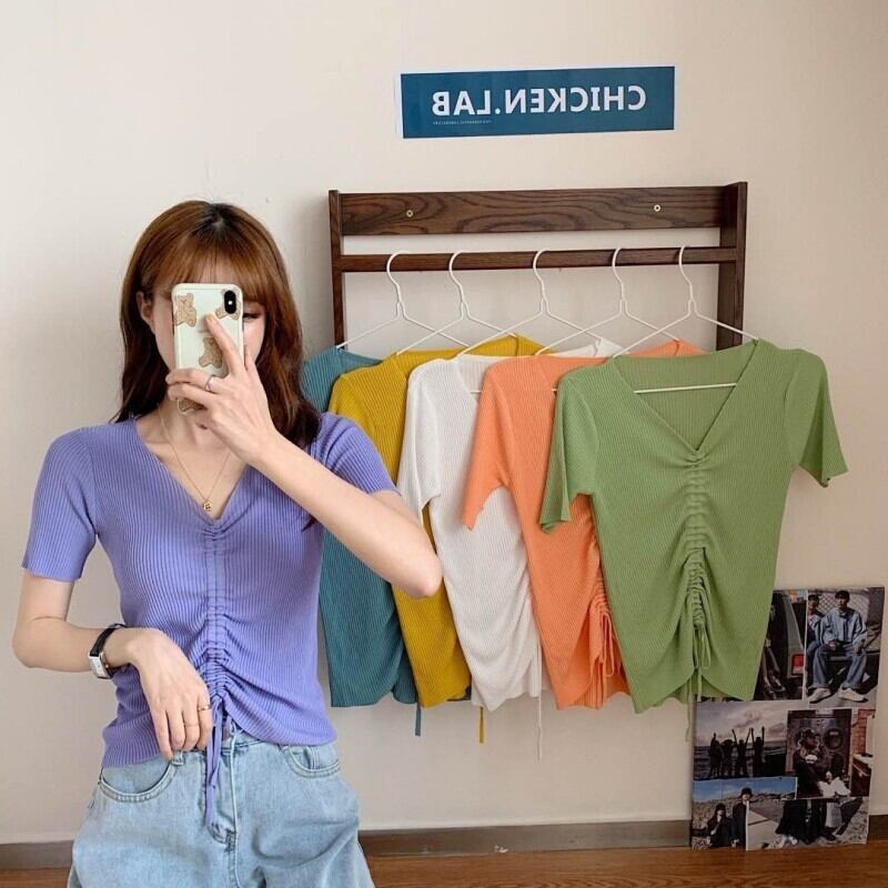✞ きれいめ☆ソリッド カラーVネックギャザーウエストすっきり☆着痩せスリムニットシャツブラウス ソリッドカラー ✞ゴスロリ SM ミリ 甘ロリ クラロリ 和ロリ エレガント 黒ロリ 姫ロリ 華ロリ BB-BB4824787