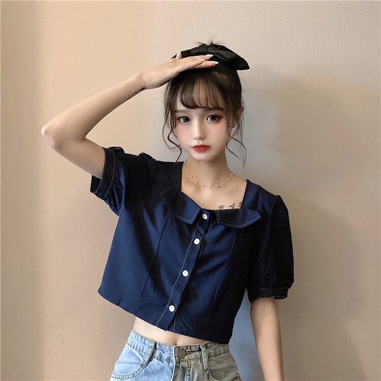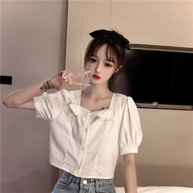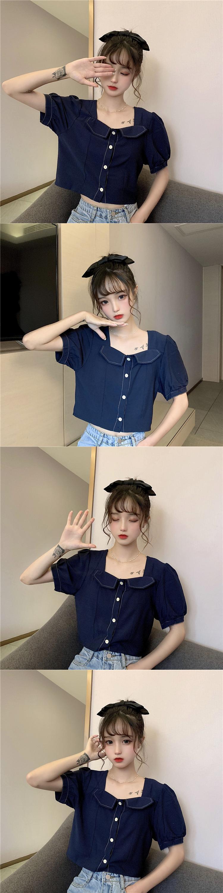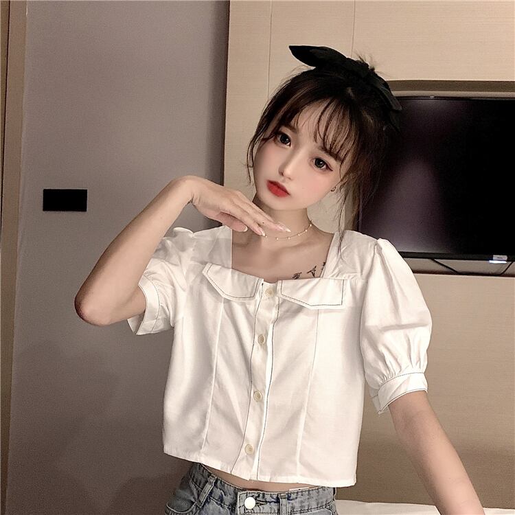 ✞ ポケットショートスリムシャツブラウス ランタンスリーブ スウィート スクウェア ✞ゴスロリ SM ミリ 甘ロリ クラロリ 和ロリ エレガント 黒ロリ 姫ロリ 華ロリ BB-BB7098337