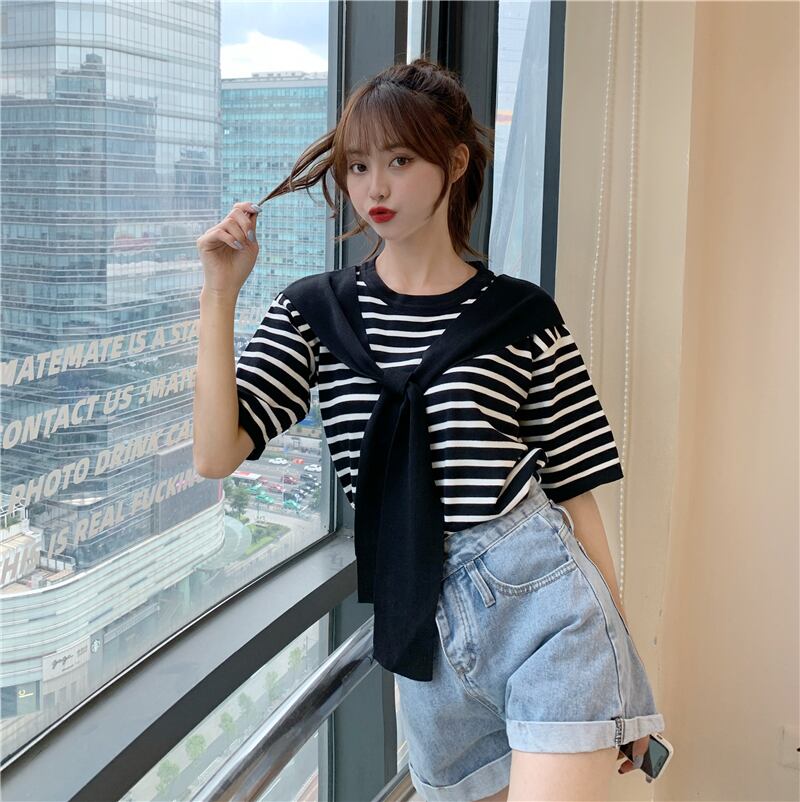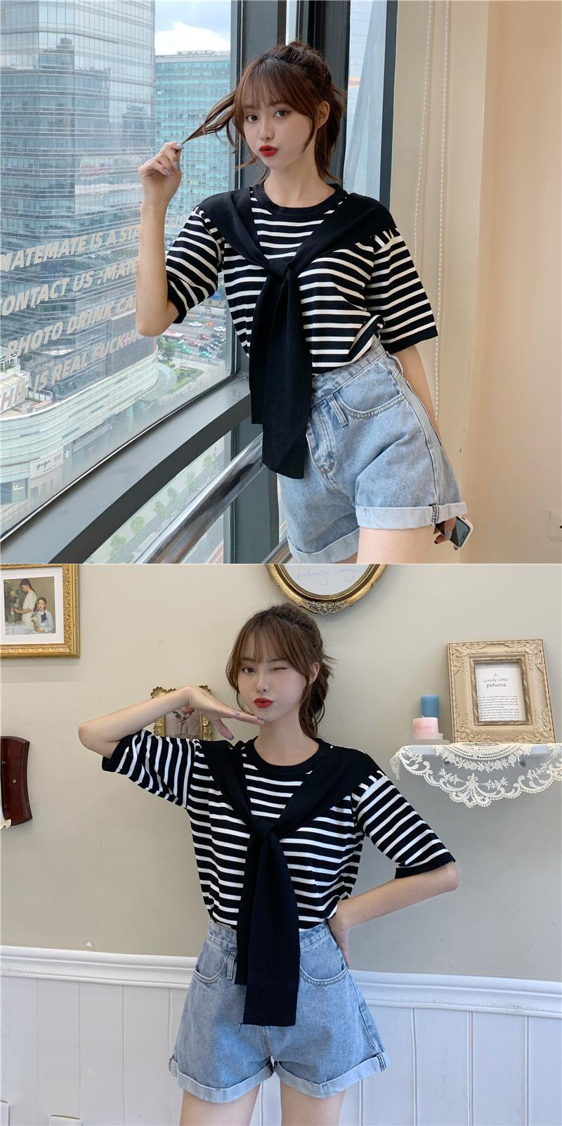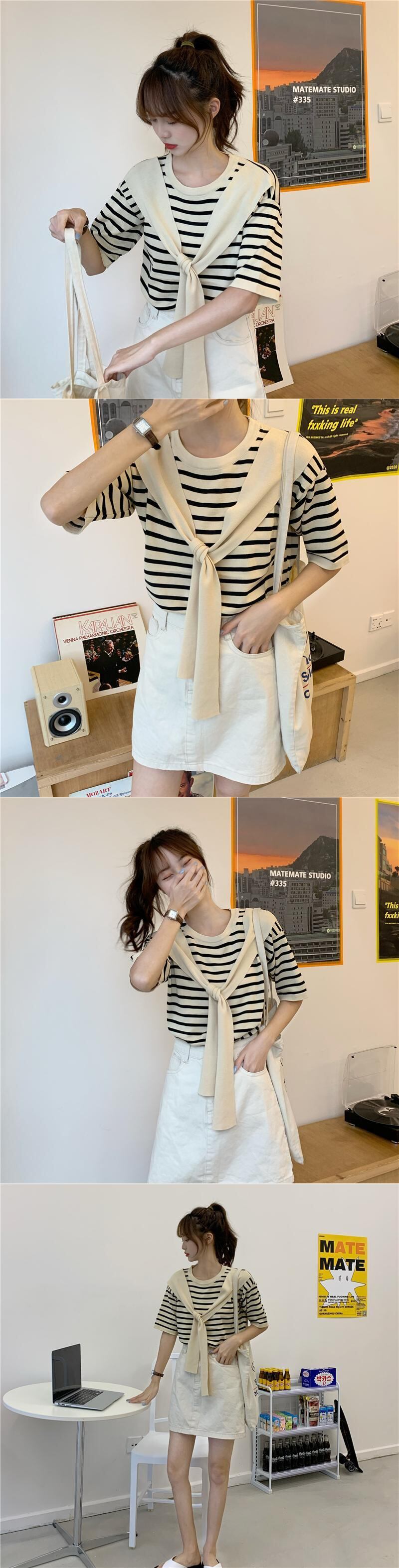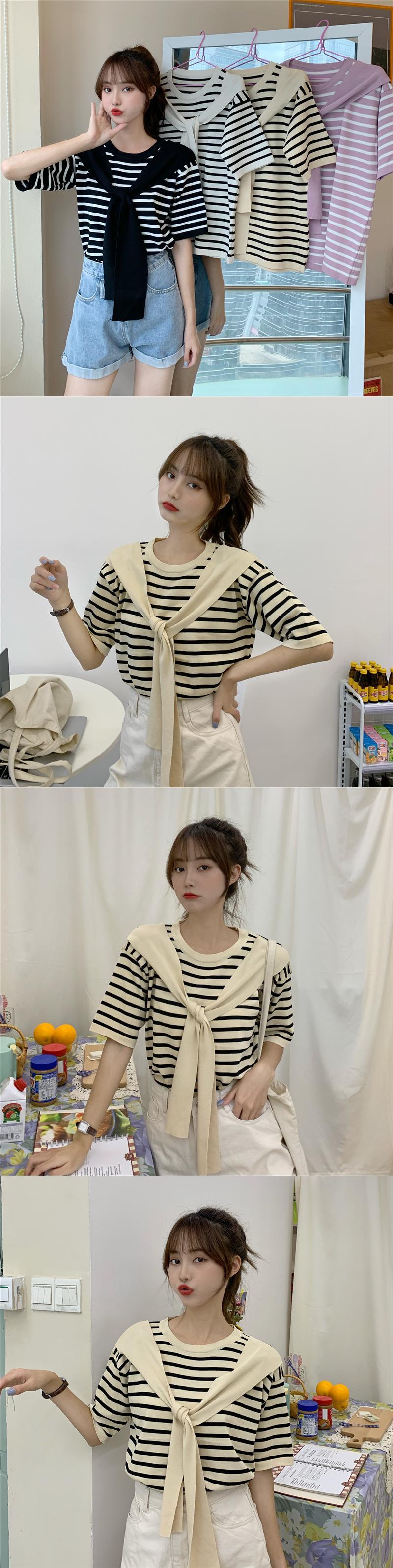 ✞ きれいめ☆ラウンドネックストライプTシャツ スウィート ✞ゴスロリ SM ミリ 甘ロリ クラロリ 和ロリ エレガント 黒ロリ 姫ロリ 華ロリ BB-BB0488658