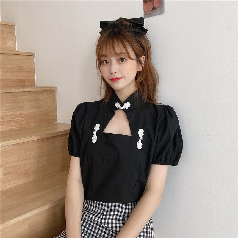 ✞ スタンダードバックルスタンドカラー♥カワイイ♥スリーブシャツブラウストップス レトロ スウィート ✞ゴスロリ SM ミリ 甘ロリ クラロリ 和ロリ エレガント 黒ロリ 姫ロリ 華ロリ BB-BB7990468
