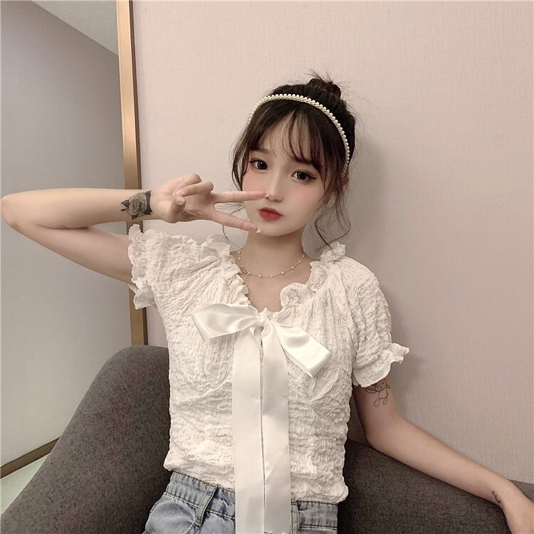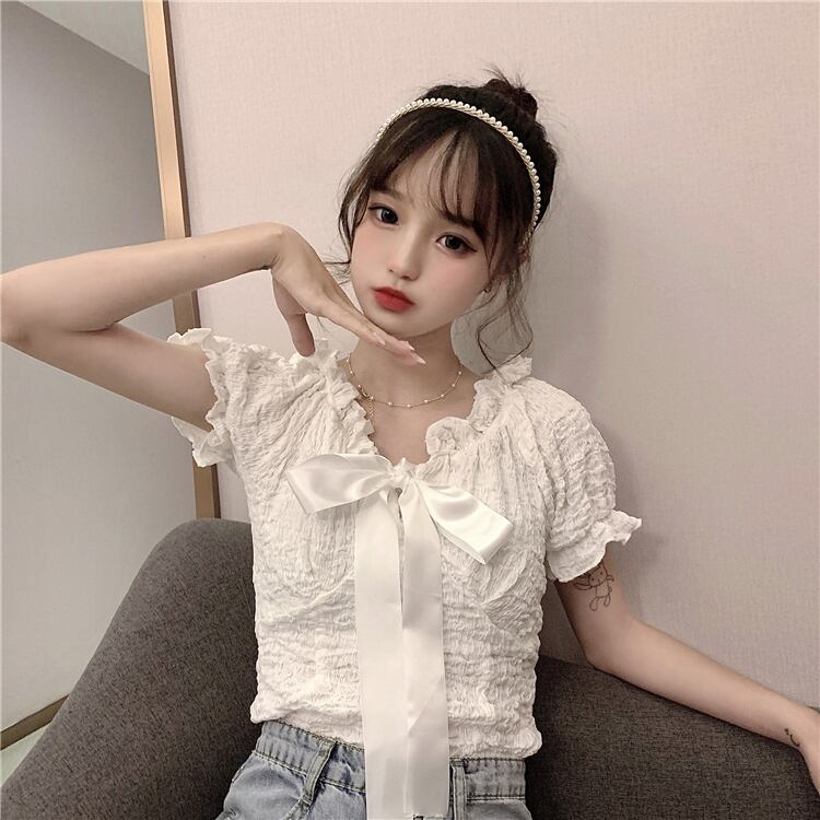 ✞ パフスリーブりぼんフリルシャツブラウス ショート スウィート ✞ゴスロリ SM ミリ 甘ロリ クラロリ 和ロリ エレガント 黒ロリ 姫ロリ 華ロリ BB-BB3034058