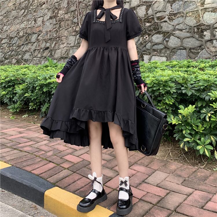 ✞ ダークレースリボン半袖スリーブ ショート スクウェア ✞ゴスロリ SM ミリ 甘ロリ クラロリ 和ロリ エレガント 黒ロリ 姫ロリ 華ロリ BB-BB9756166