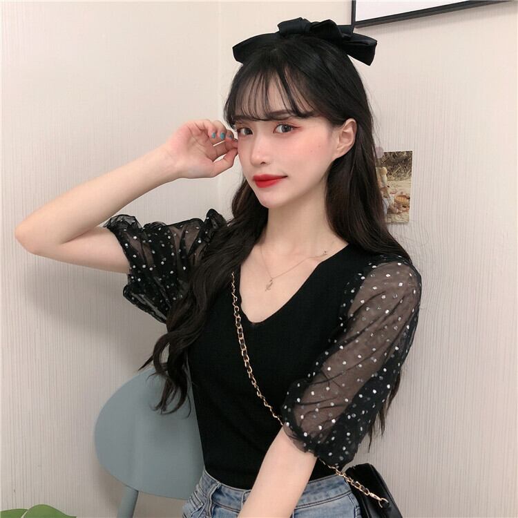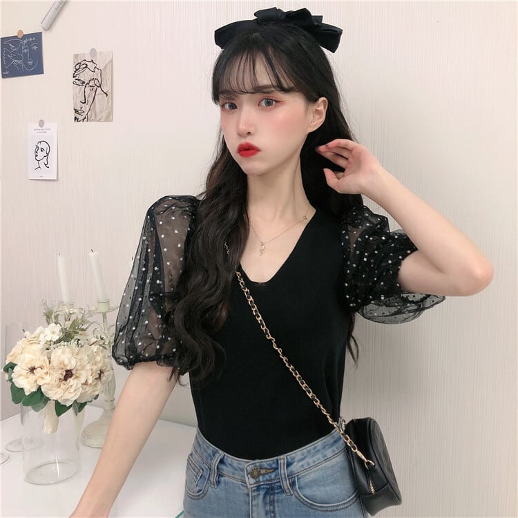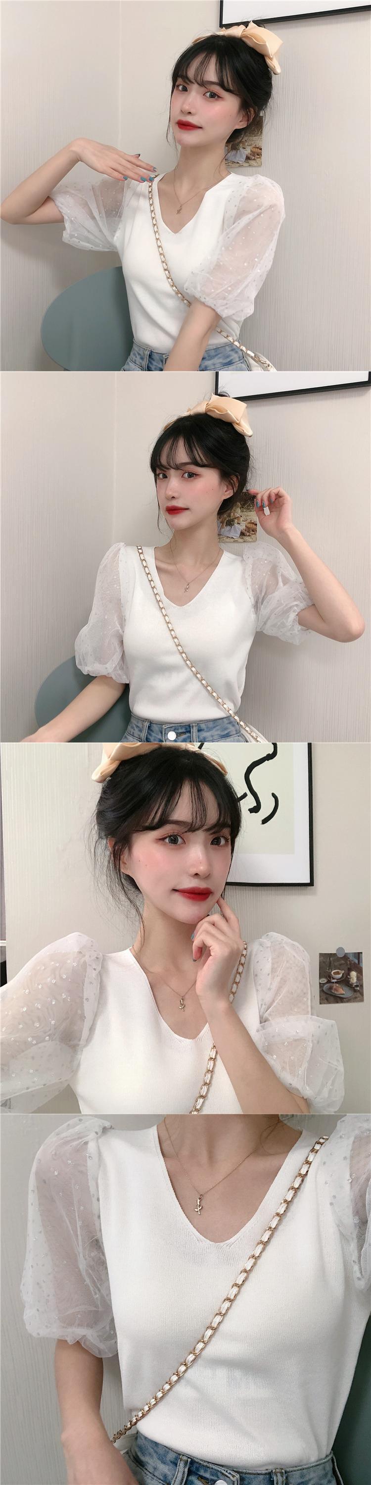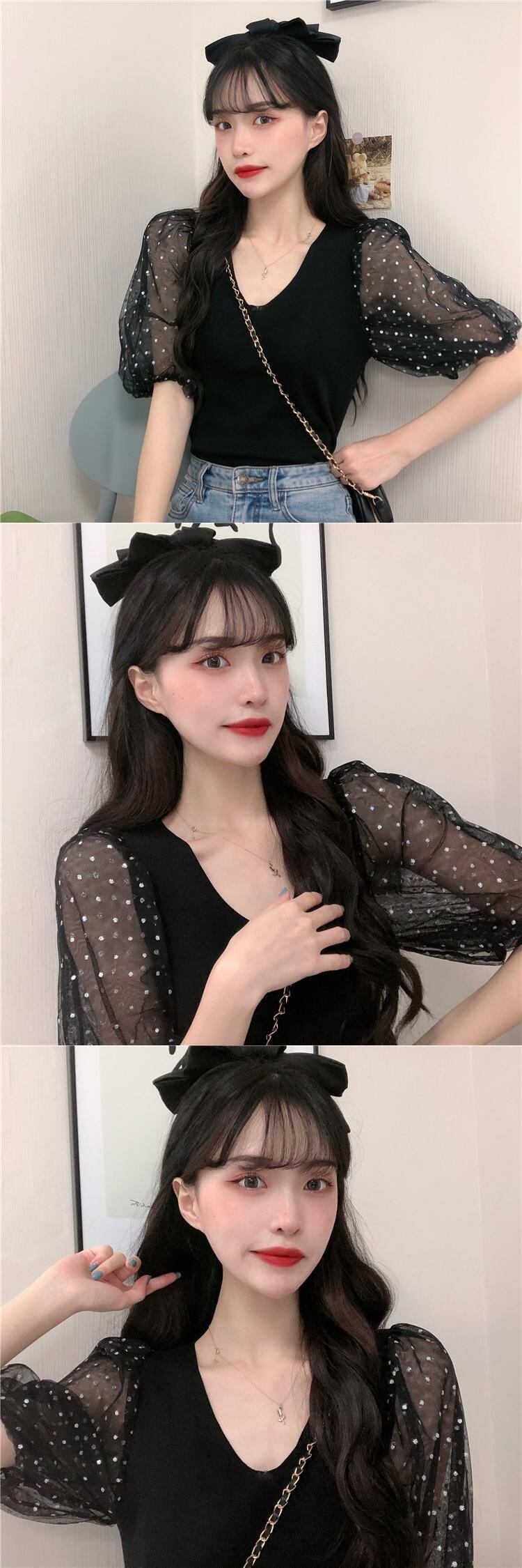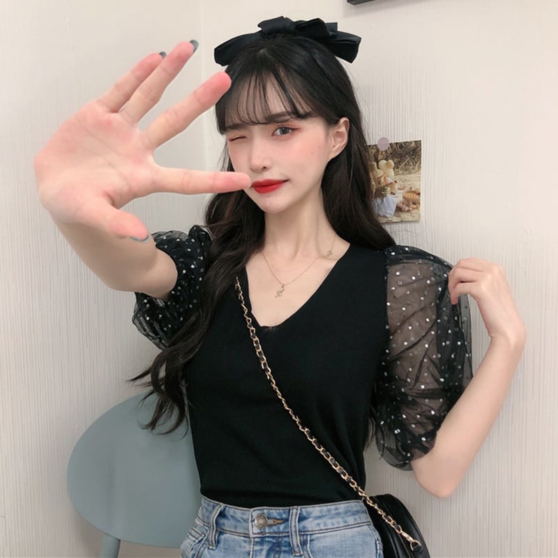 ✞ サマーメッシュスリムVネックショートセーター 大人女子☆ スウィート 夏物 ステッチ ✞ゴスロリ SM ミリ 甘ロリ クラロリ 和ロリ エレガント 黒ロリ 姫ロリ 華ロリ BB-BB1782370