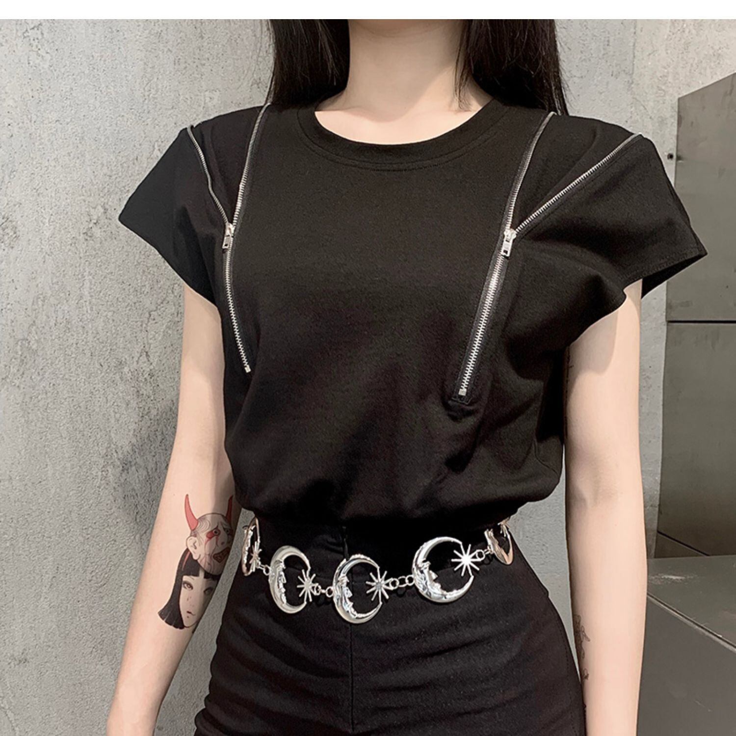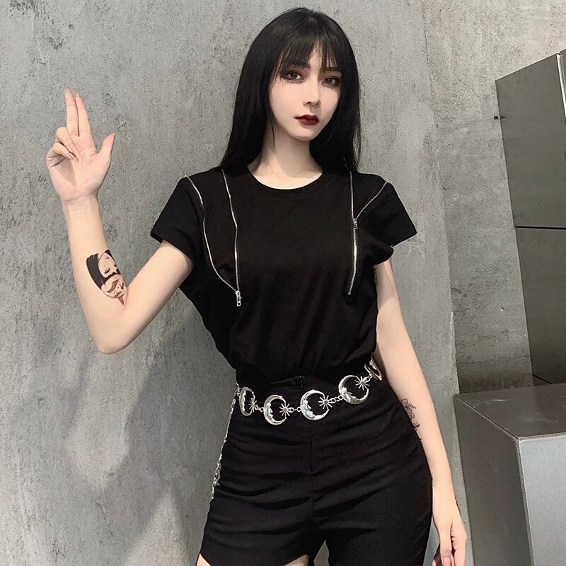 ✞✝✞ ブラックTシャツ ジッパージャケット コットン ✞✝✞ ゴスロリ SM ミリ 甘ロリ クラロリ 和ロリ エレガント 黒ロリ 姫ロリ 華ロリ AA-AA3987074