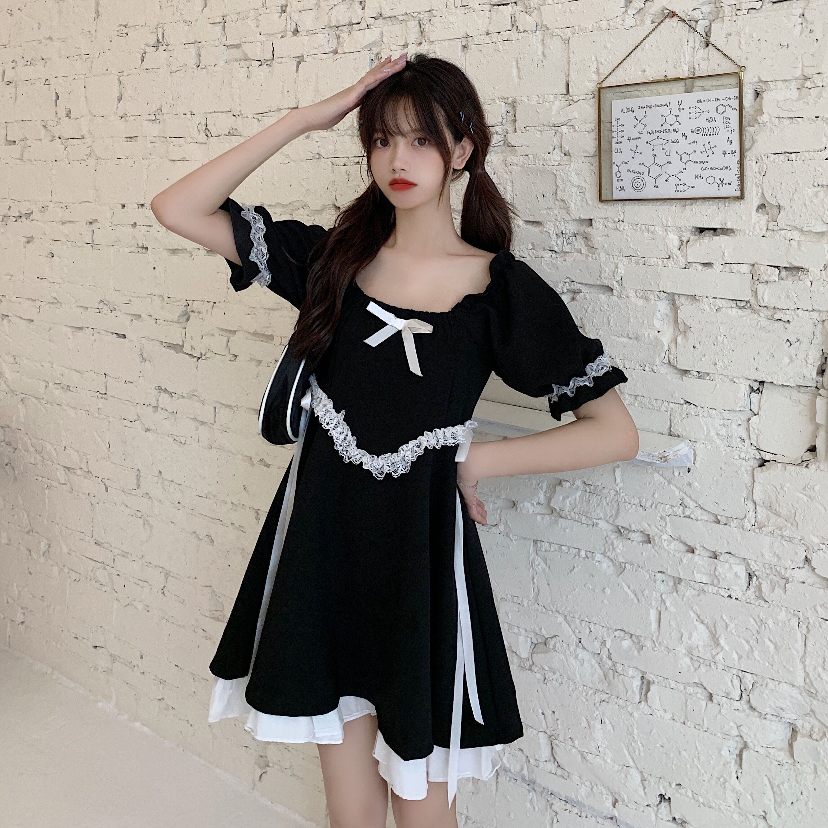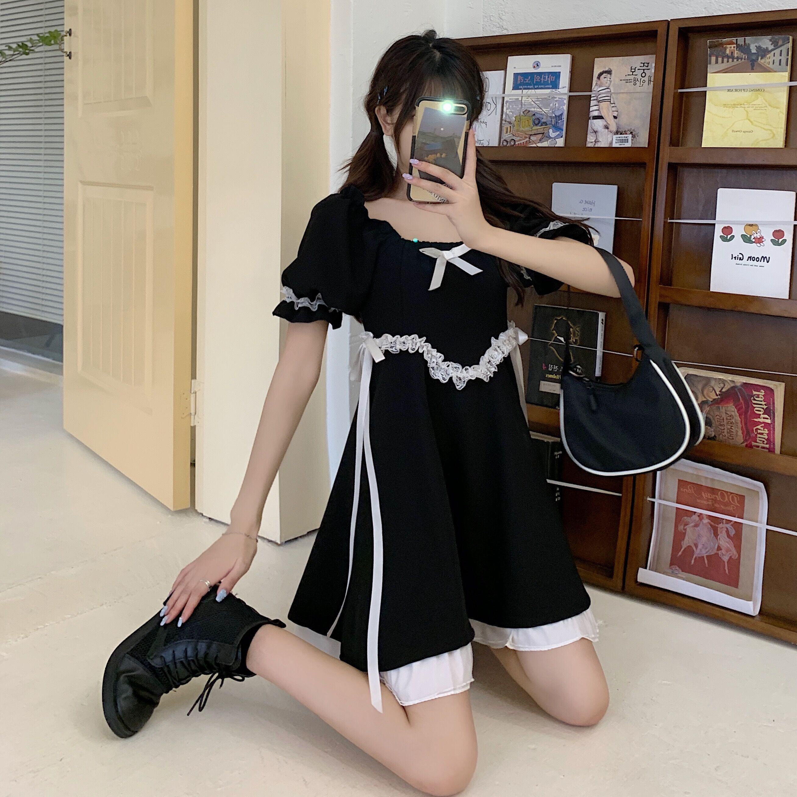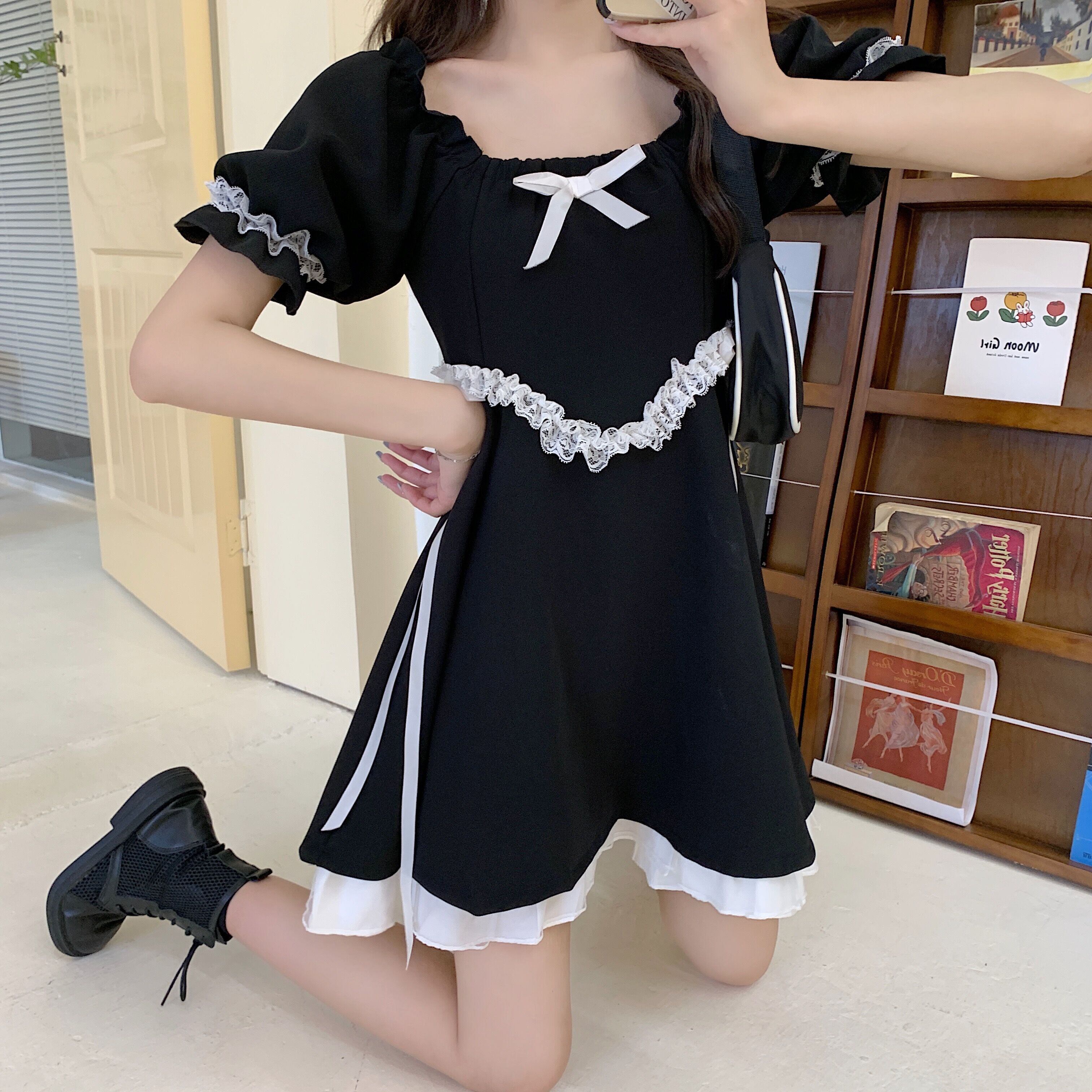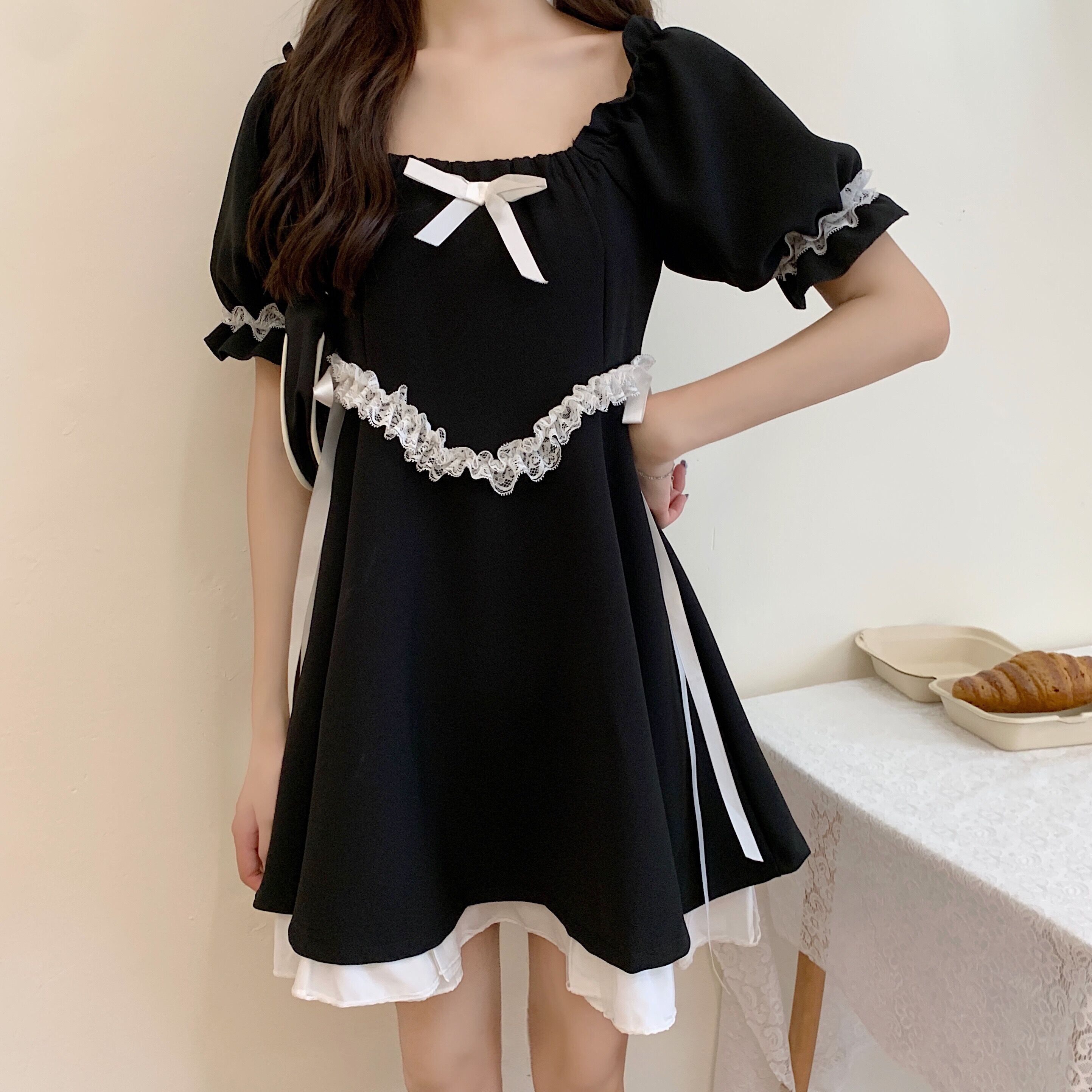 ✞ レースきれいめ☆スリーブ リボン スクウェア ステッチ ✞ゴスロリ SM ミリ 甘ロリ クラロリ 和ロリ エレガント 黒ロリ 姫ロリ 華ロリ BB-BB7343369