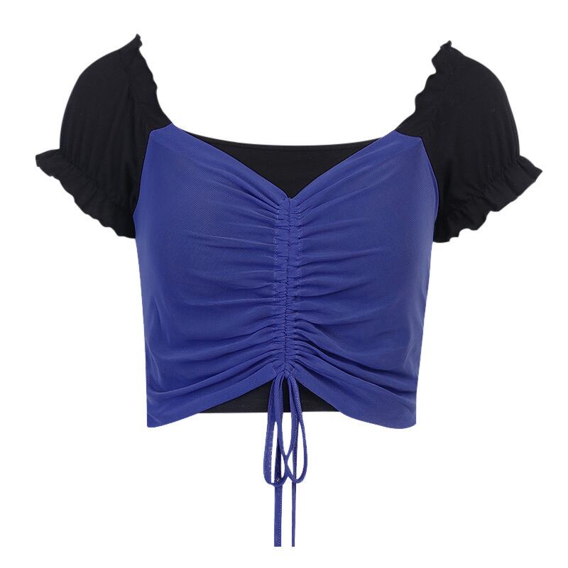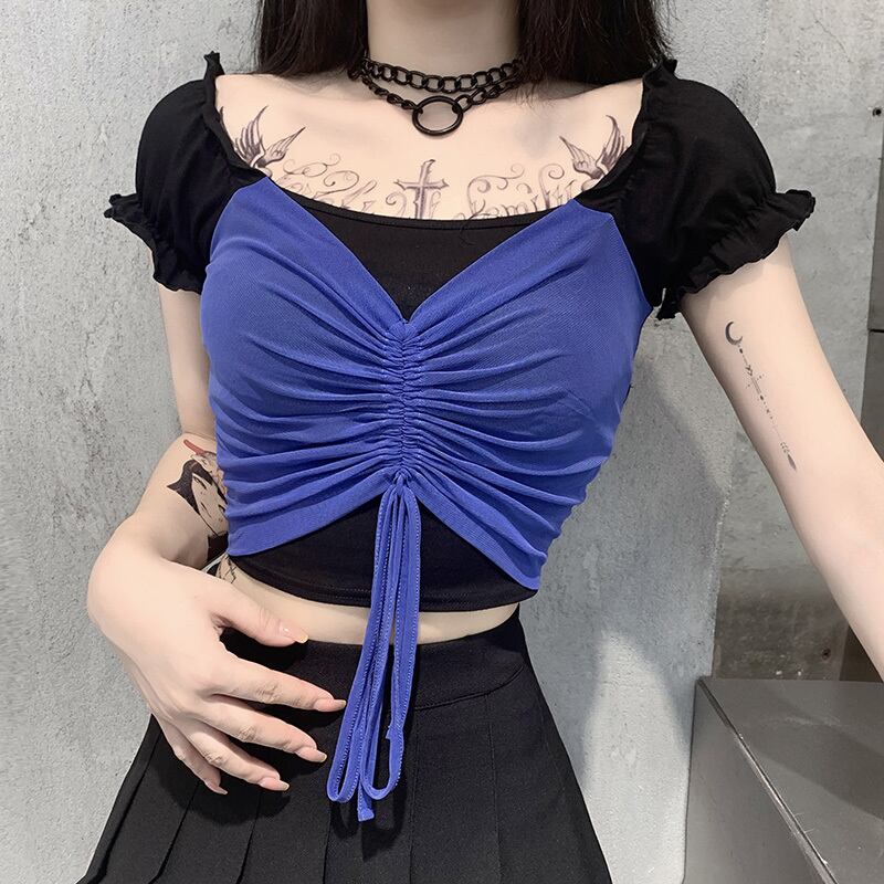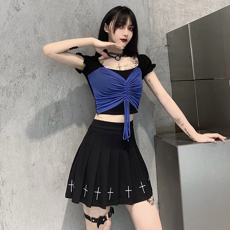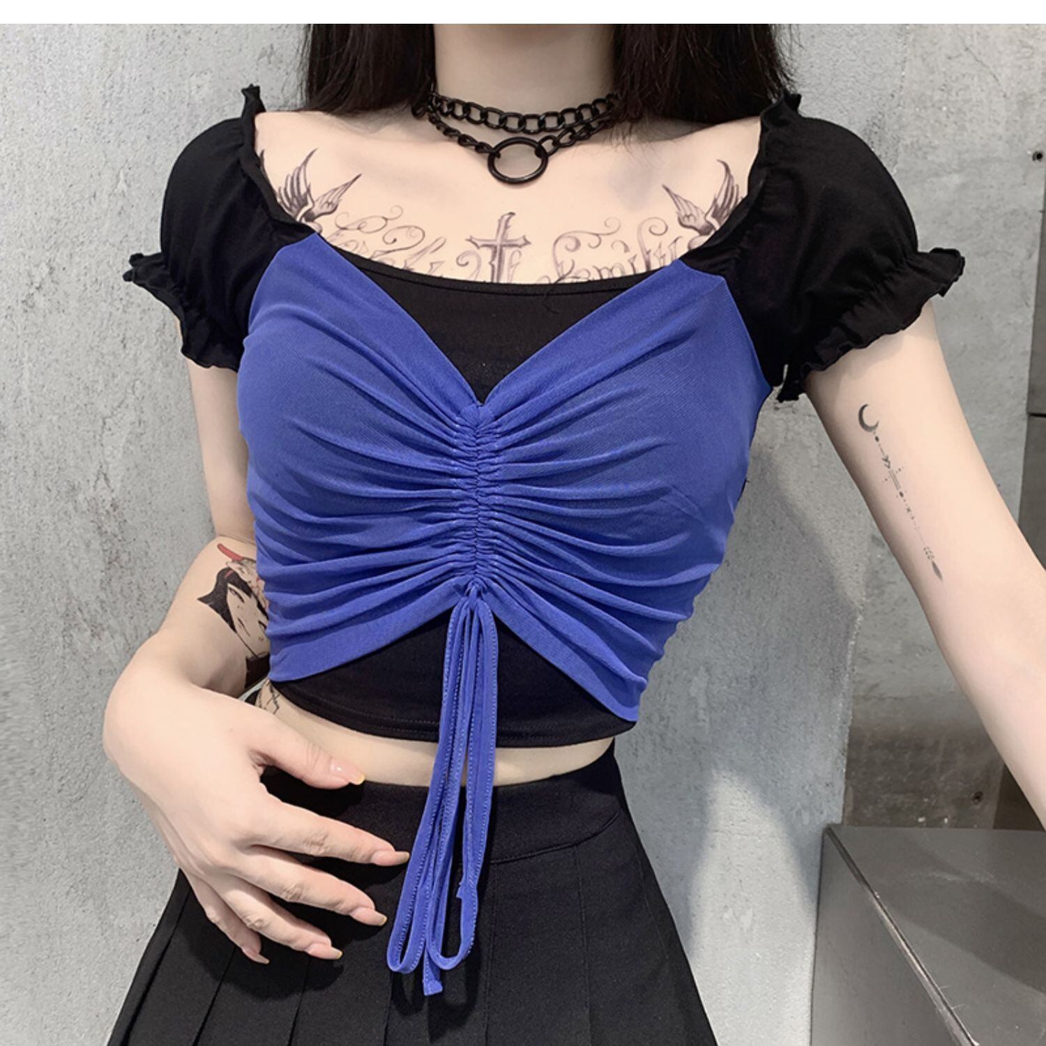 ✞✝✞ ギャザーTシャツ ラウンドネックスリーブトップス ショート ✞✝✞ ゴスロリ SM ミリ 甘ロリ クラロリ 和ロリ エレガント 黒ロリ 姫ロリ 華ロリ AA-AA0682242