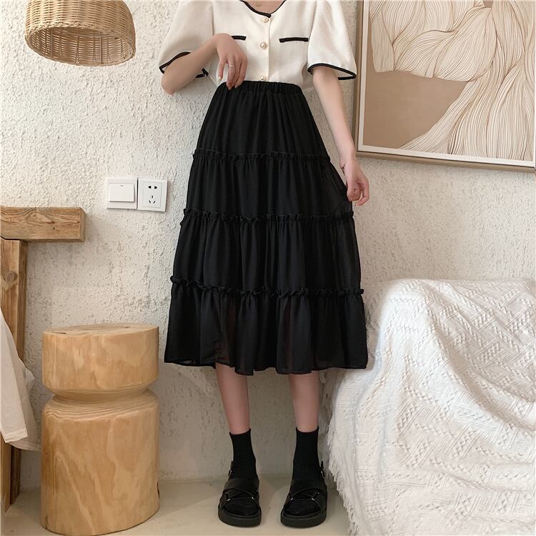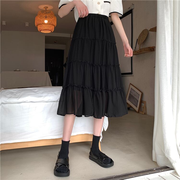 ✞ ストレッチシフォンロングスカート エラスティック 伸縮 ✞ゴスロリ SM ミリ 甘ロリ クラロリ 和ロリ エレガント 黒ロリ 姫ロリ 華ロリ BB-BB3817933