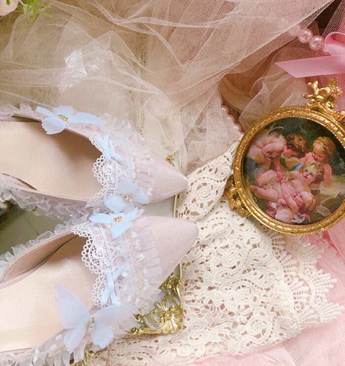 ✞✝✞ ヒールButterflyデザイン 靴 シューズ ハイヒール ✞✝✞ゴスロリ SM ミリ 甘ロリ クラロリ 和ロリ エレガント 黒ロリ 姫ロリ 華ロリ DD-DD0672178