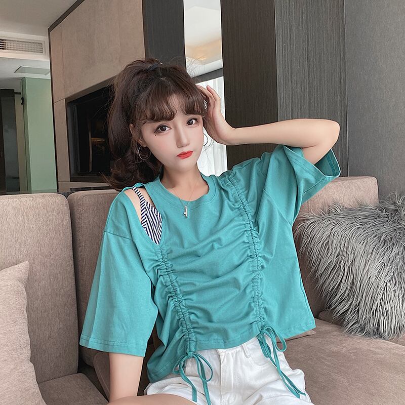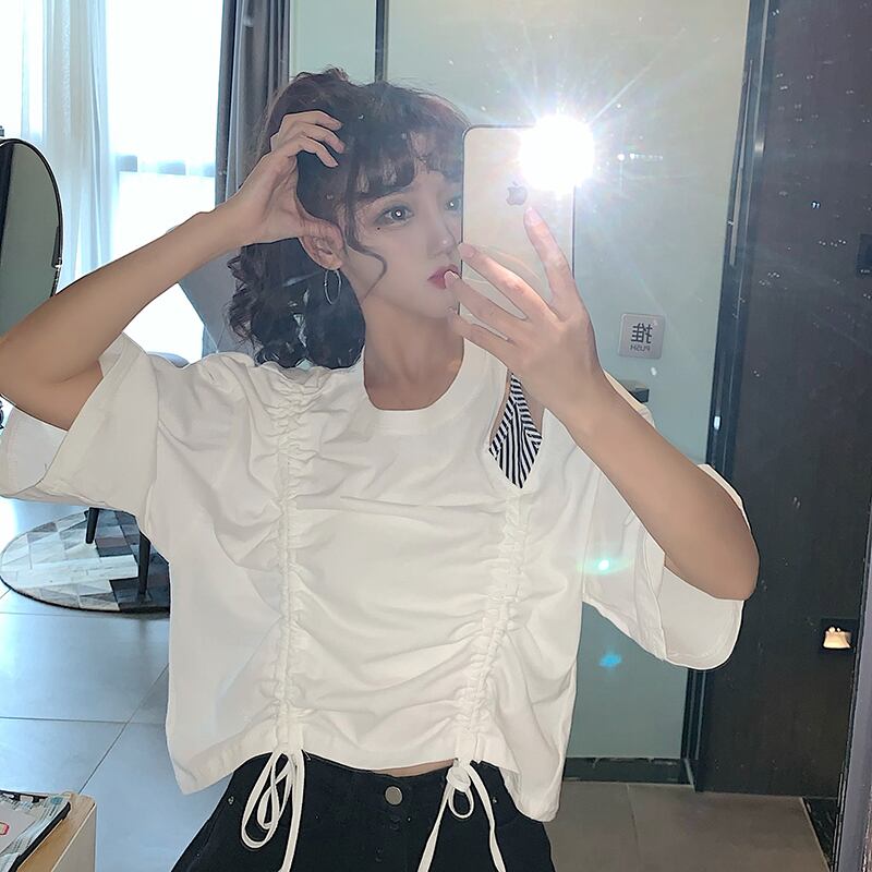 ✞ ギャザーレースラウンドネックショートTシャツ ステッチ ✞ゴスロリ SM ミリ 甘ロリ クラロリ 和ロリ エレガント 黒ロリ 姫ロリ 華ロリ BB-BB3963783