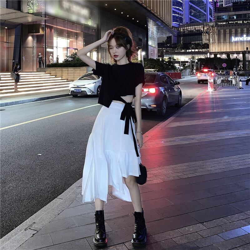色:黒シャツワンピース,ホワイトスカートワンピース