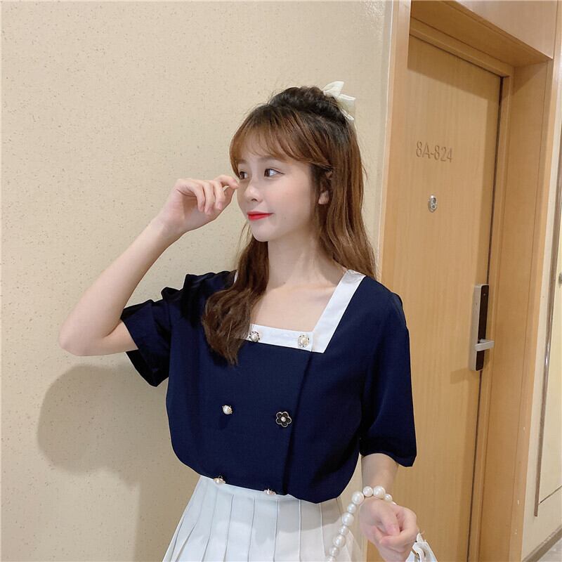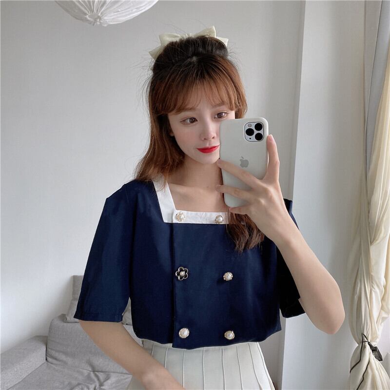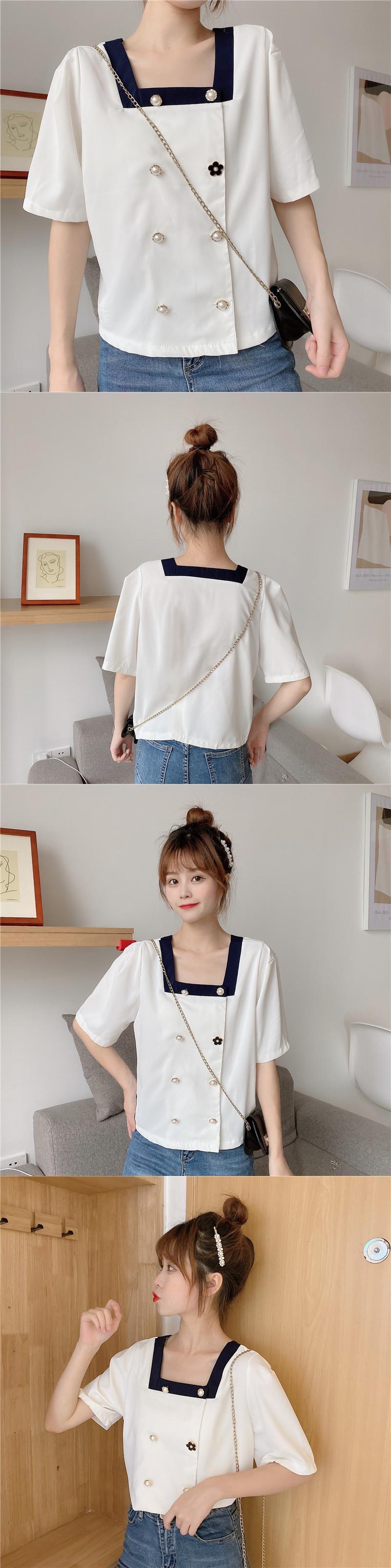 ✞ スタンダードカラー♥カワイイ♥パールバックルシャツブラウストップス レトロ スウィート 真珠 スクウェア ✞ゴスロリ SM ミリ 甘ロリ クラロリ 和ロリ エレガント 黒ロリ 姫ロリ 華ロリ BB-BB8231520