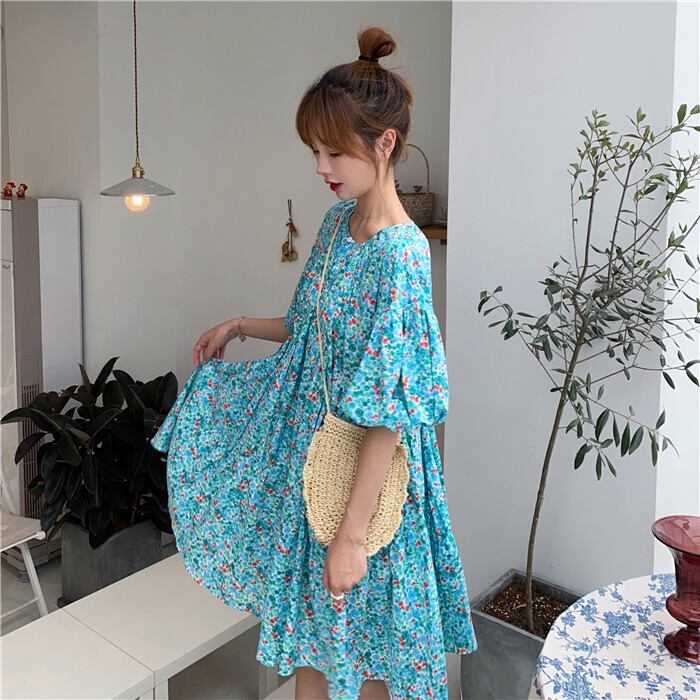 ✞ ランタンスリーブ花柄プリーツロングワンピースドレスOP 大人女子☆ スウィート ✞ゴスロリ SM ミリ 甘ロリ クラロリ 和ロリ エレガント 黒ロリ 姫ロリ 華ロリ BB-BB3675658