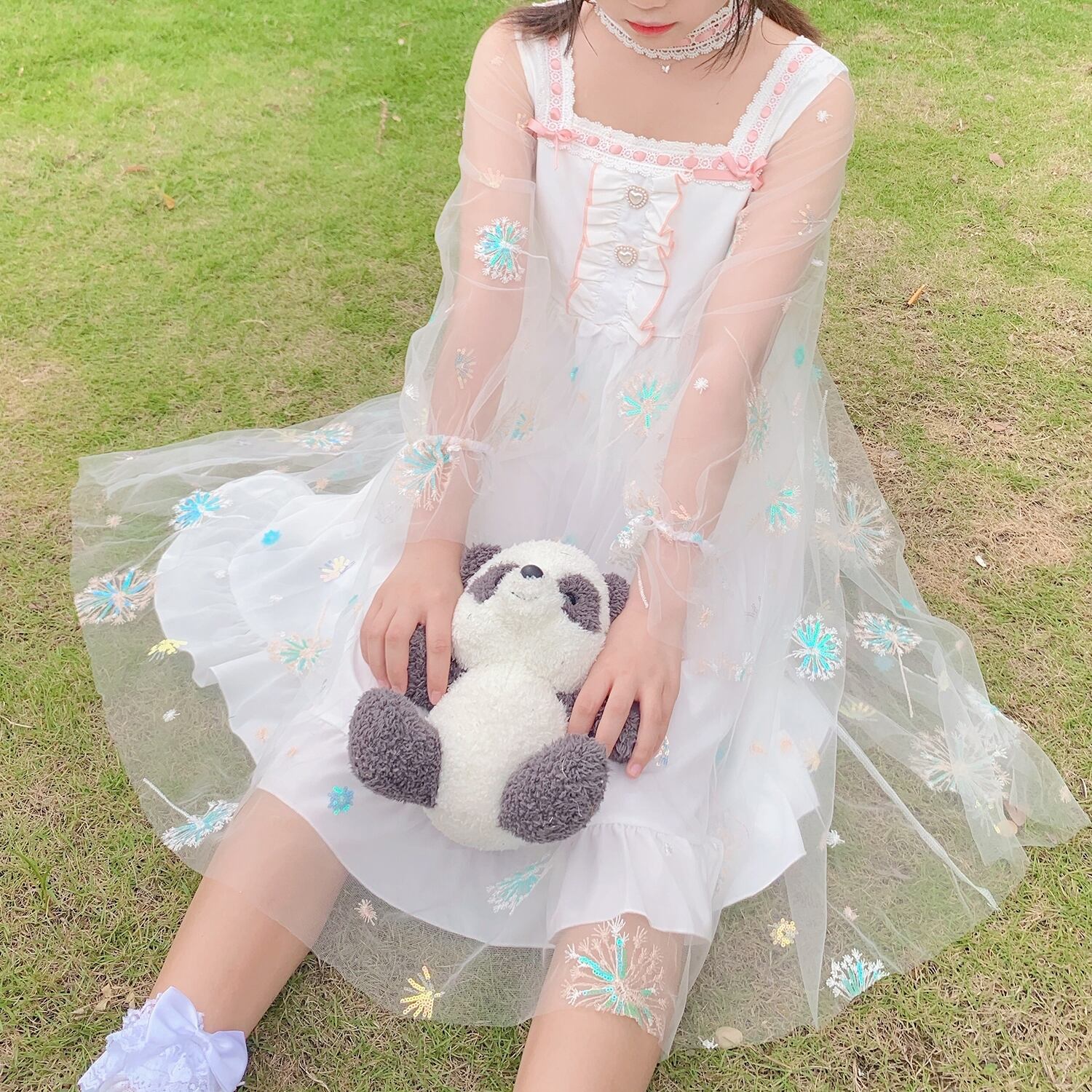 ✞ メッシュ刺繍チュールワンピースドレスOPチュニック スカート スクウェア ステッチ ✞ゴスロリ SM ミリ 甘ロリ クラロリ 和ロリ エレガント 黒ロリ 姫ロリ 華ロリ BB-BB0445191