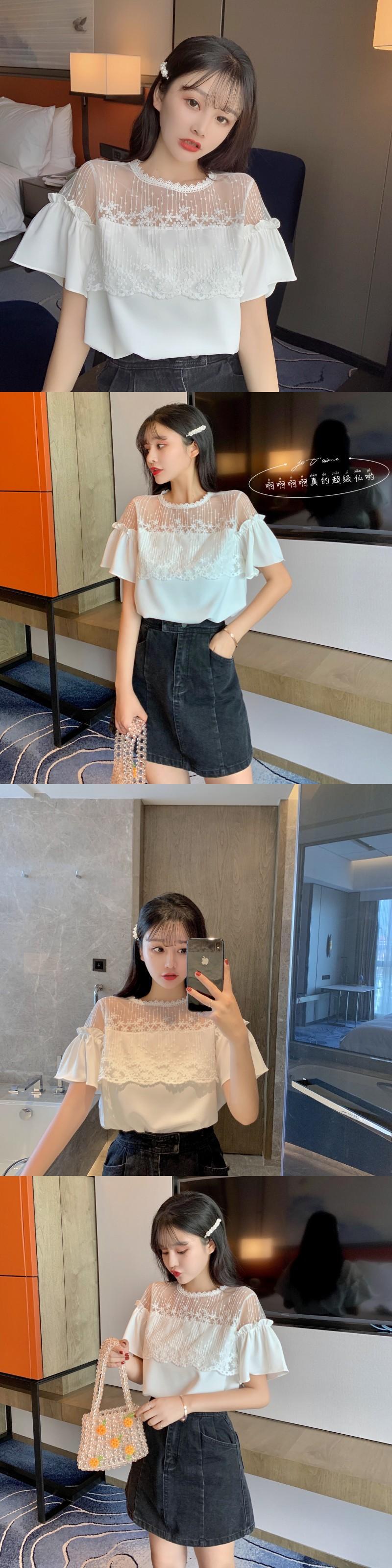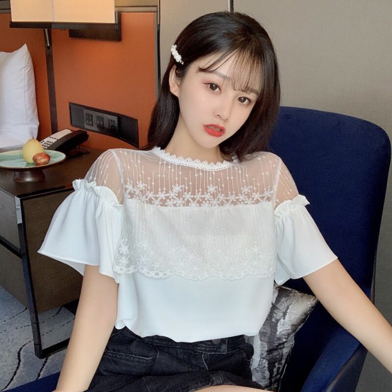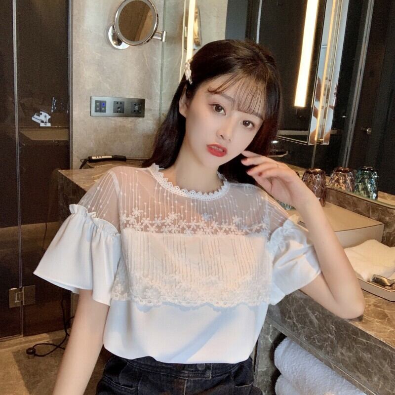 ✞ シフォンシャツブラウスレース半袖スリーブトップス 大人女子☆ ショート スウィート ステッチ ✞ゴスロリ SM ミリ 甘ロリ クラロリ 和ロリ エレガント 黒ロリ 姫ロリ 華ロリ BB-BB6825348
