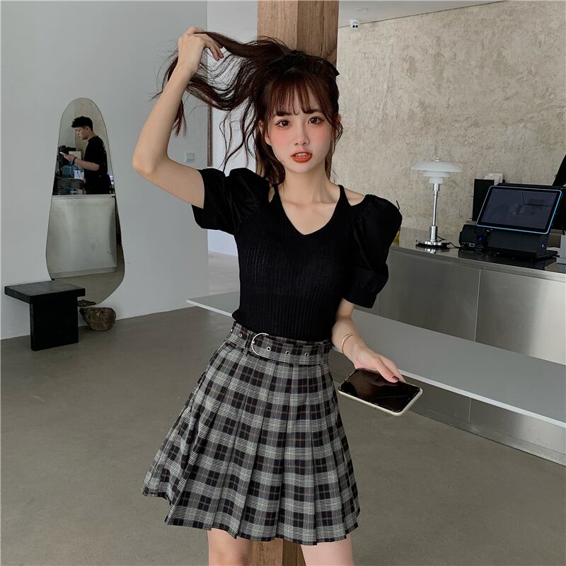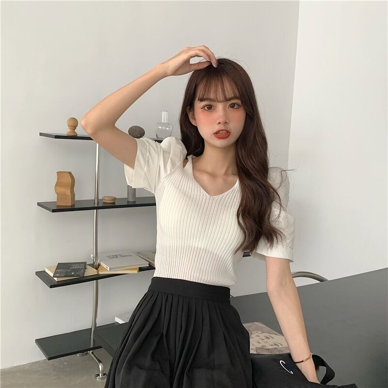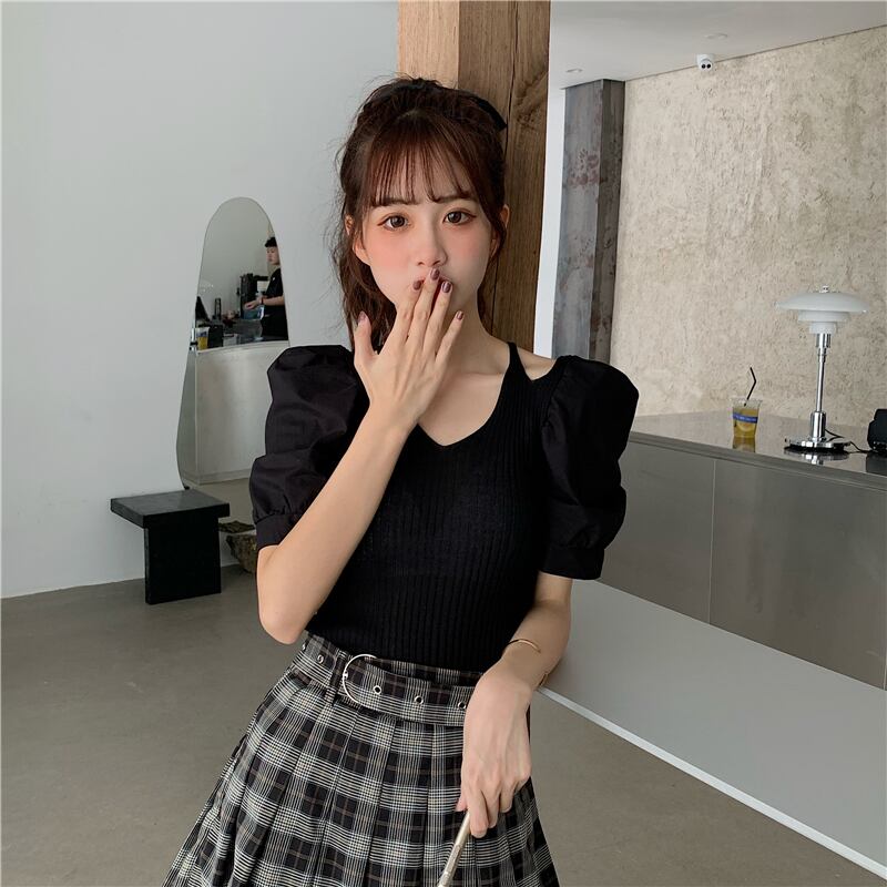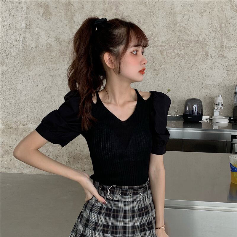 ✞ Vネックウエストすっきり☆着痩せ♥カワイイ♥スリーブストラップレスニットトップス ステッチ ✞ゴスロリ SM ミリ 甘ロリ クラロリ 和ロリ エレガント 黒ロリ 姫ロリ 華ロリ BB-BB2849111