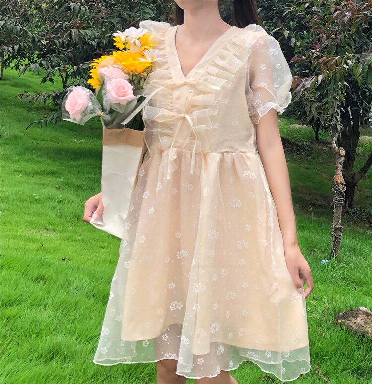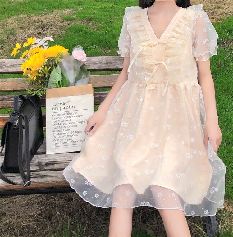 ✞ Vネックメッシュスリーブ リボン スウィート ステッチ ✞ゴスロリ SM ミリ 甘ロリ クラロリ 和ロリ エレガント 黒ロリ 姫ロリ 華ロリ BB-BB5326862