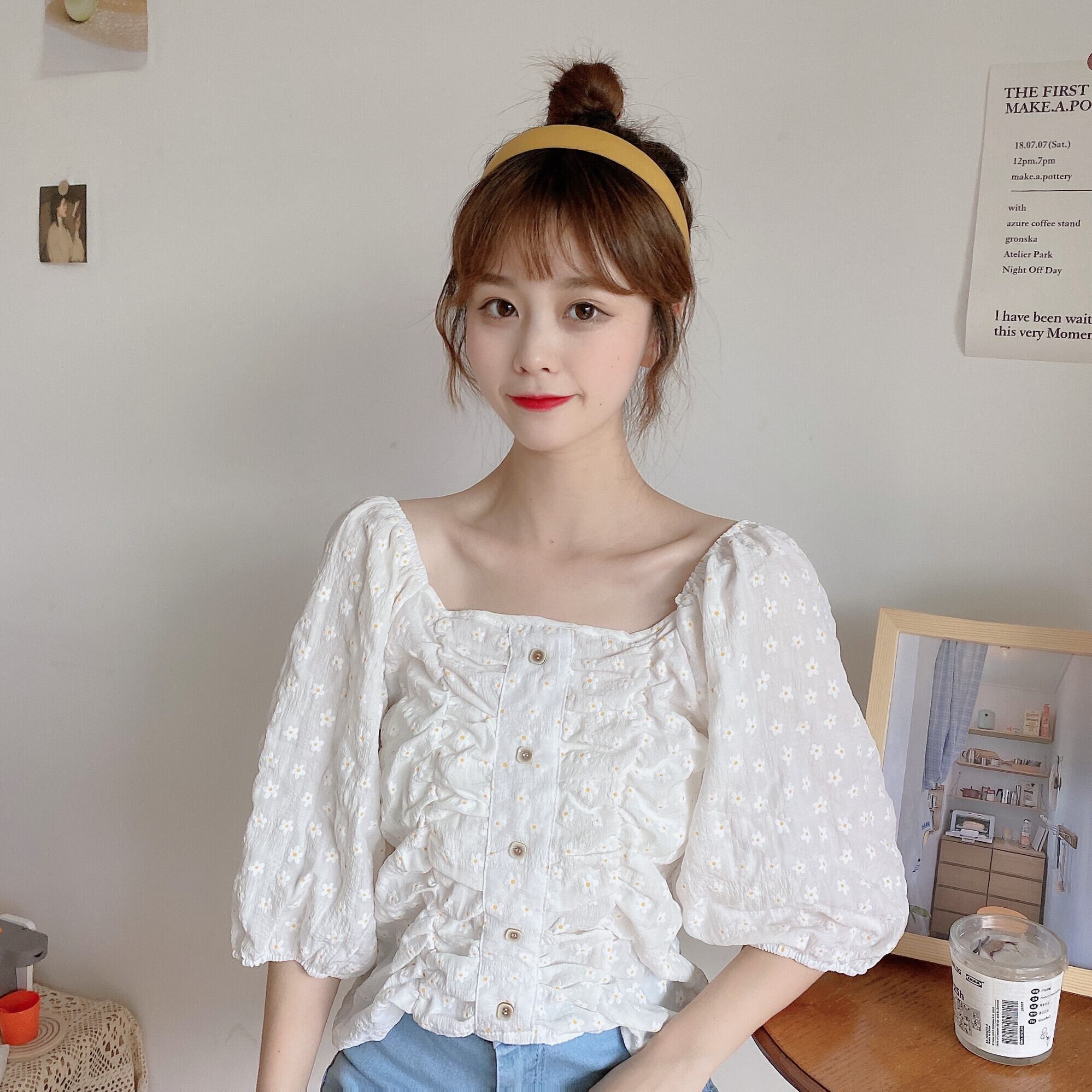 ✞ スタンダードスリム♥カワイイ♥プリーツスリーブシャツブラウストップス レトロ スウィート スクウェア ✞ゴスロリ SM ミリ 甘ロリ クラロリ 和ロリ エレガント 黒ロリ 姫ロリ 華ロリ BB-BB0168979