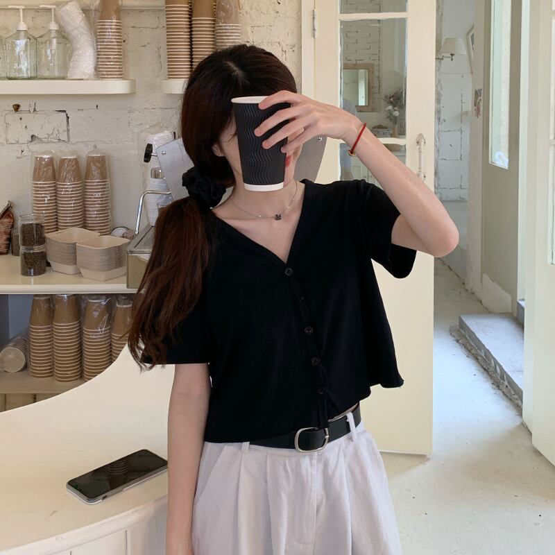 ✞ スタンダードソリッド カラーVネックショート♥カワイイ♥Tシャツ シャツブラウス レトロ ソリッドカラー ✞ゴスロリ SM ミリ 甘ロリ クラロリ 和ロリ エレガント 黒ロリ 姫ロリ 華ロリ BB-BB4316440