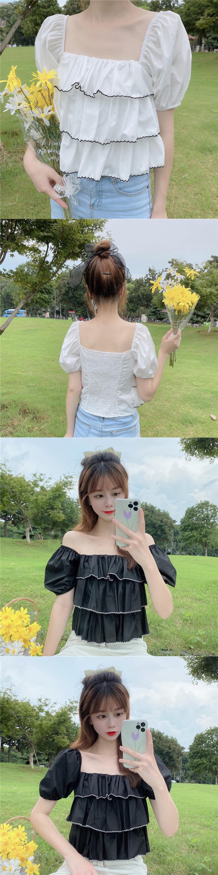 ✞ スリーブプリーツショートシャツブラウス スウィート スクウェア ✞ゴスロリ SM ミリ 甘ロリ クラロリ 和ロリ エレガント 黒ロリ 姫ロリ 華ロリ BB-BB5668586