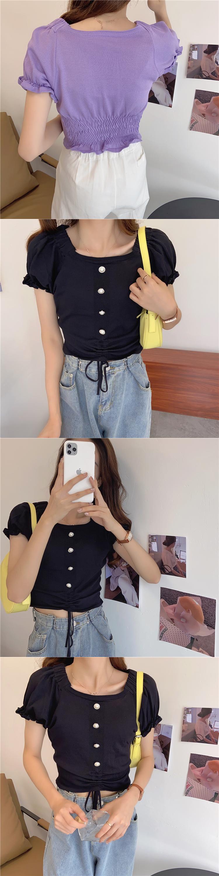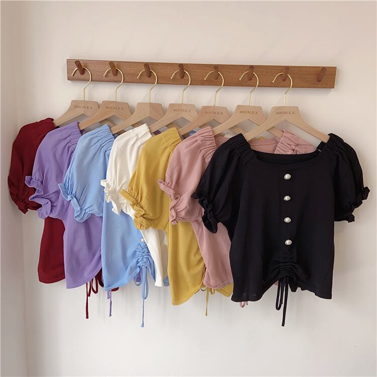 ✞ カラーラウンドネックウエストすっきり☆着痩せギャザースリーブショートニットトップス スウィート ✞ゴスロリ SM ミリ 甘ロリ クラロリ 和ロリ エレガント 黒ロリ 姫ロリ 華ロリ BB-BB9795530