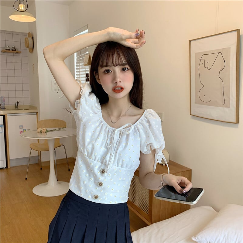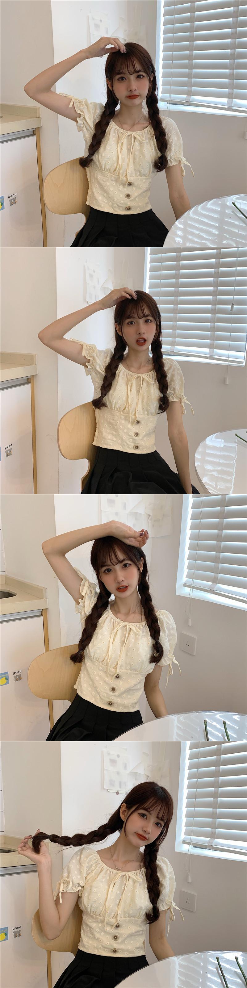 ✞ サマープリント柄プリーツレーススリーブショートシャツブラウス大人女子☆ スウィート 夏物 ✞ゴスロリ SM ミリ 甘ロリ クラロリ 和ロリ エレガント 黒ロリ 姫ロリ 華ロリ BB-BB0060510