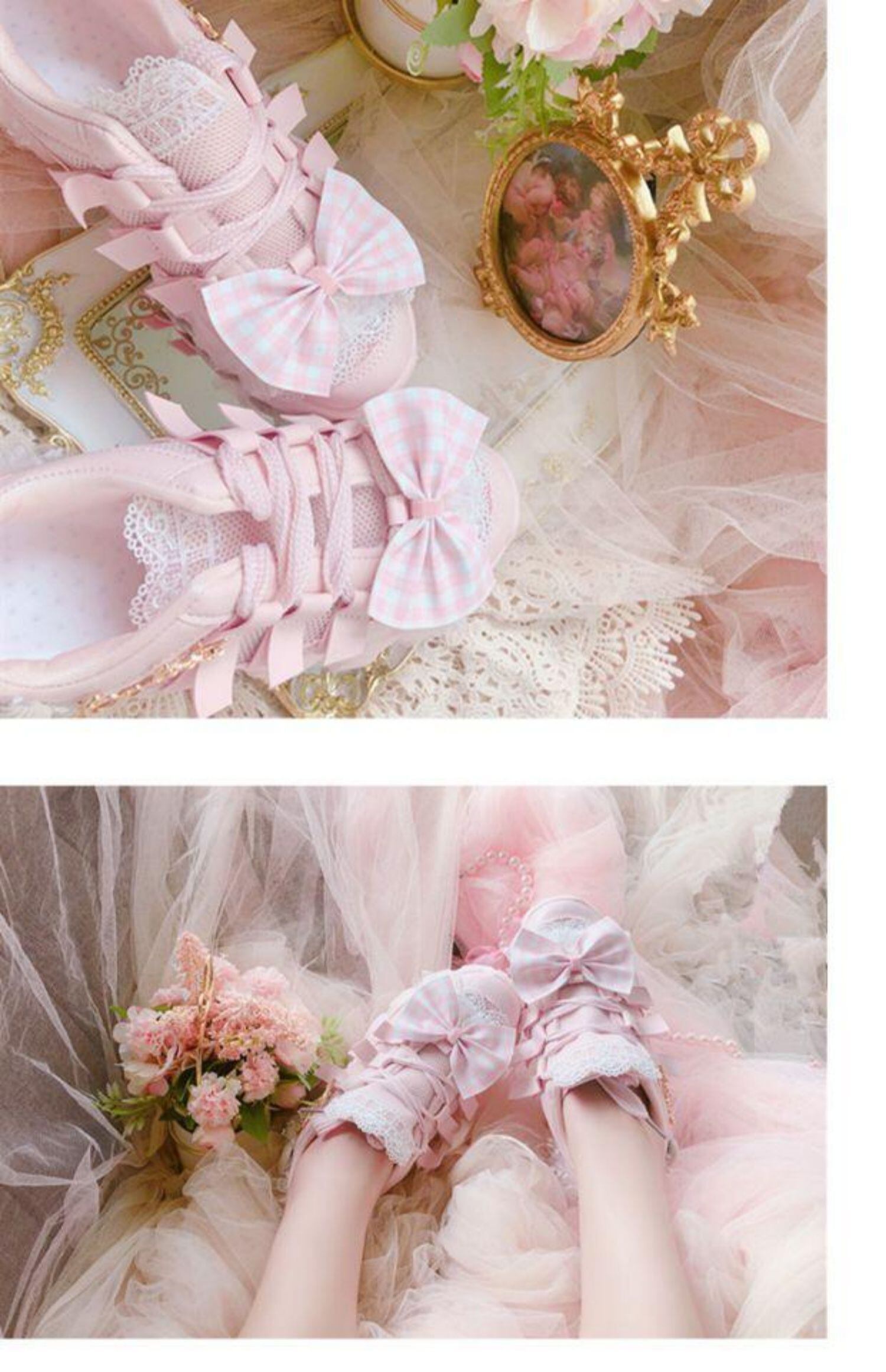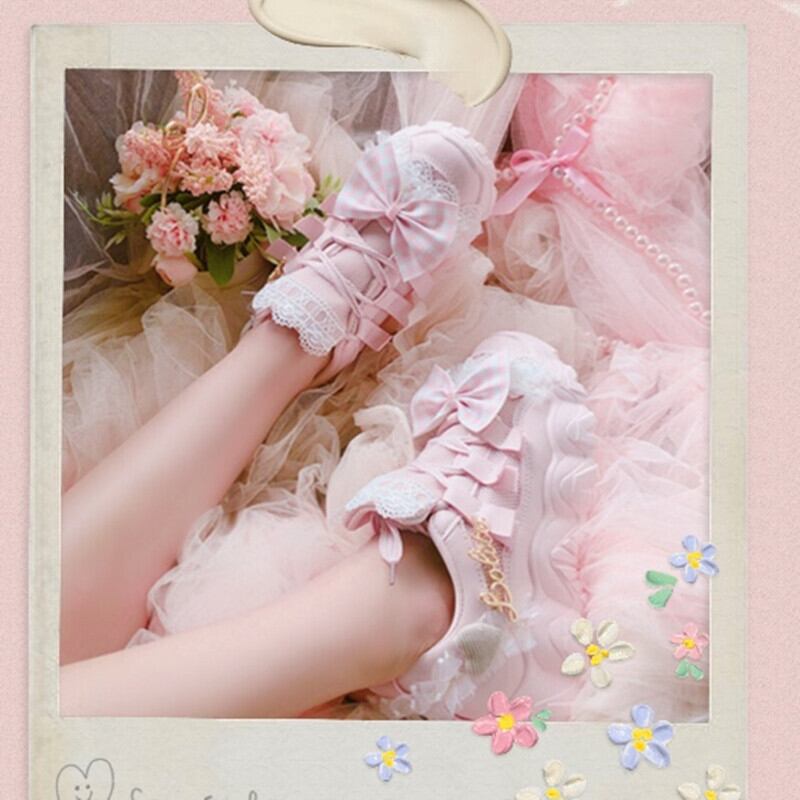 ✞✝✞ チェック柄きれいめ☆ストラップ 靴 シューズ ピンク リボン スウィート ✞✝✞ゴスロリ SM ミリ 甘ロリ クラロリ 和ロリ エレガント 黒ロリ 姫ロリ 華ロリ DD-DD4540174