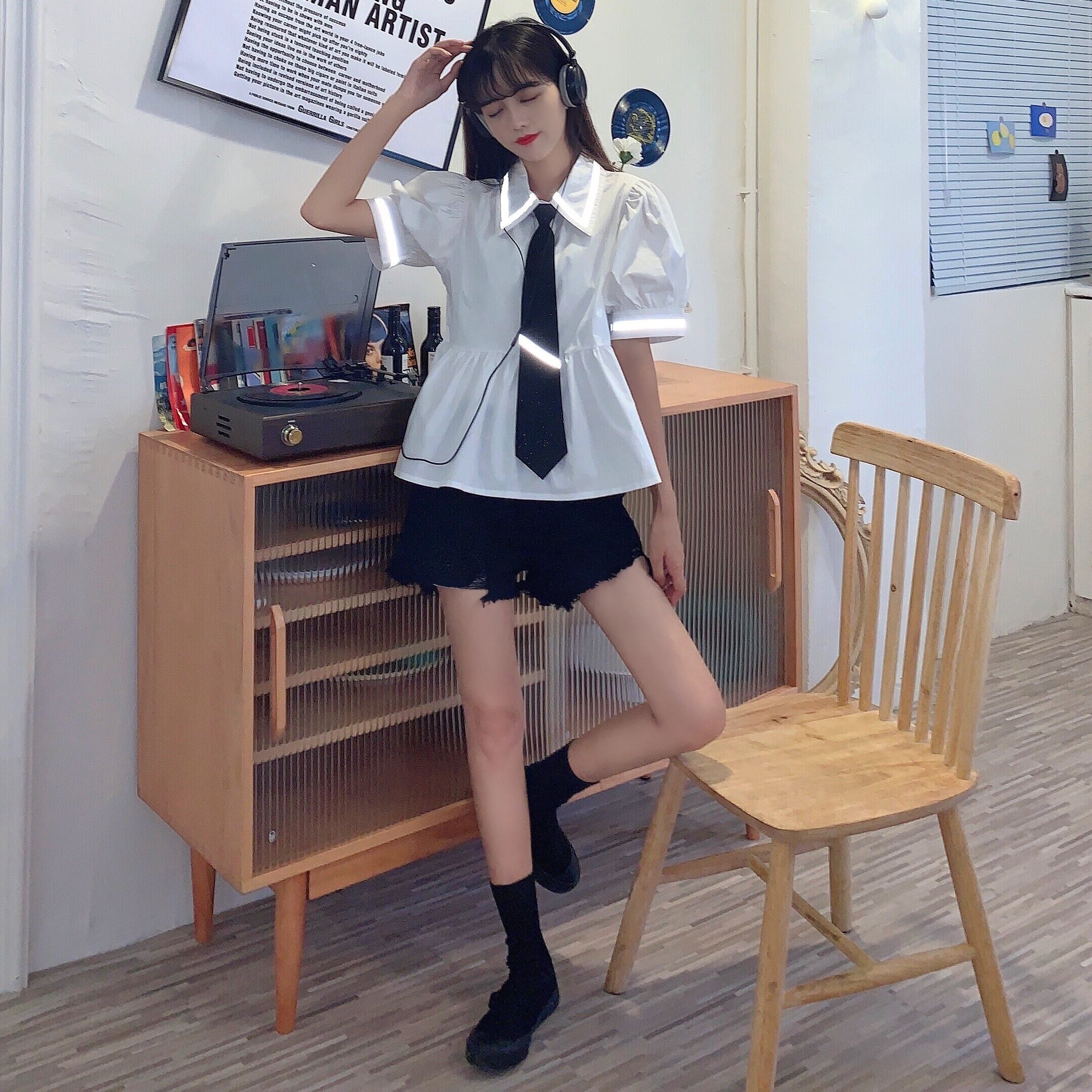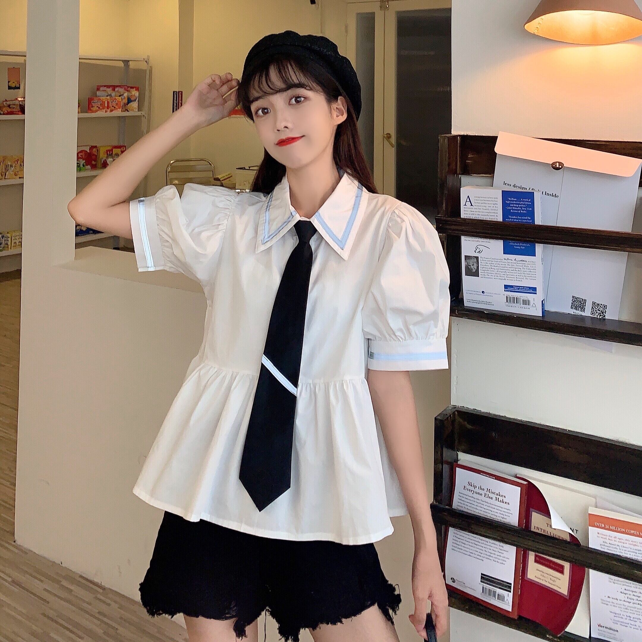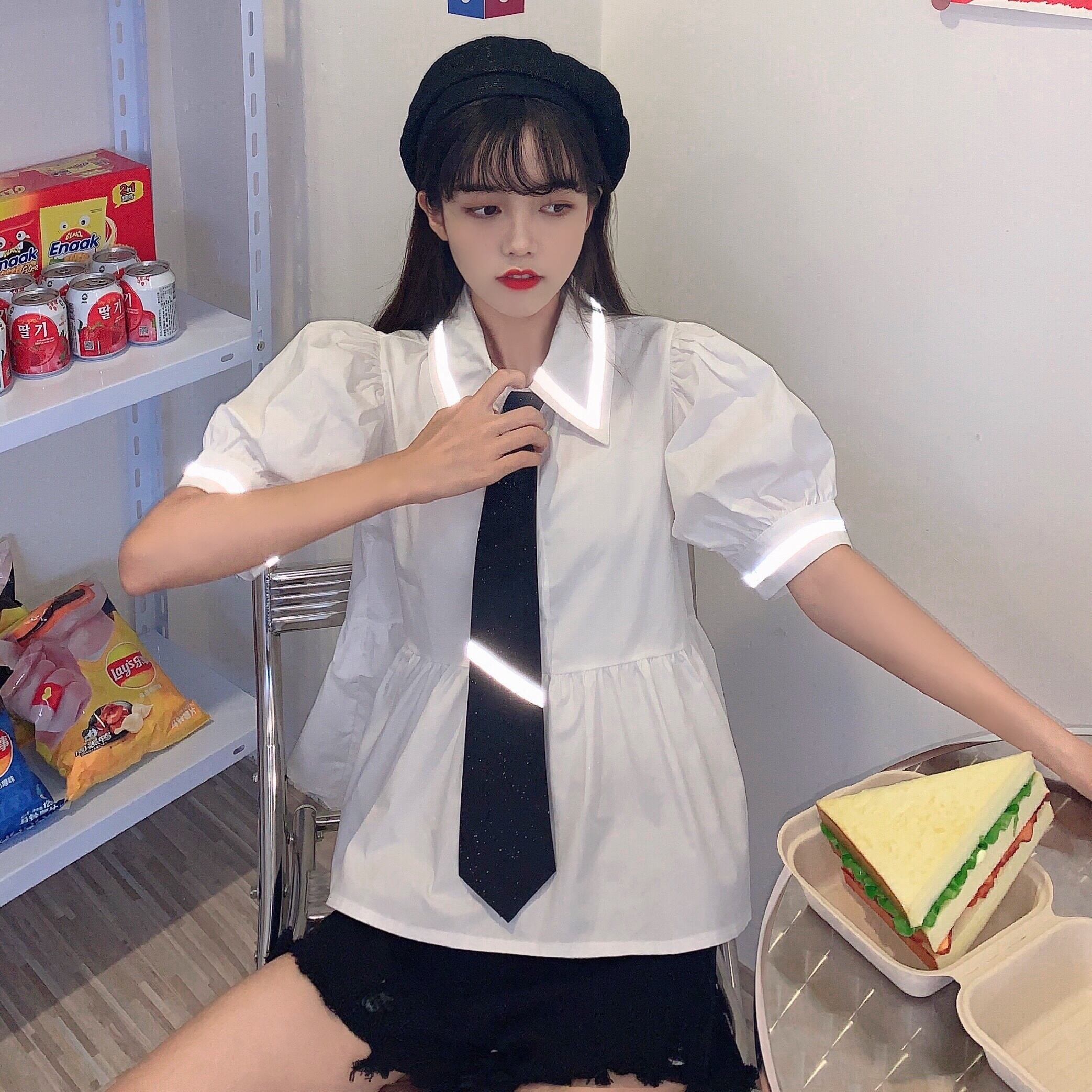 色:白のシャツ,黒いシャツ,黒のネクタイ