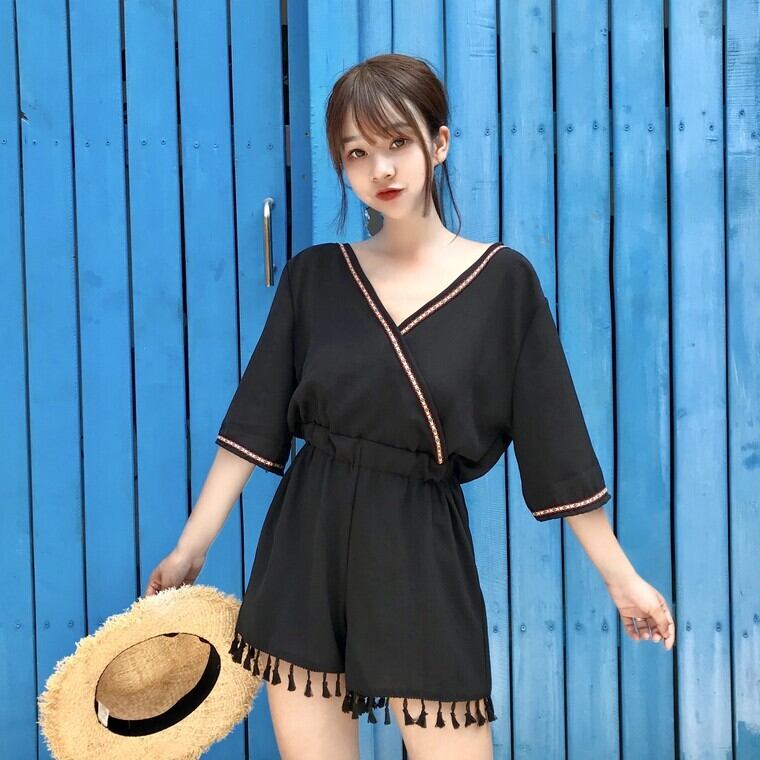 ✞ Vネッククロスバックレスきれいめ☆ワイドレッグジャンプスーツ ジャンパースカート ステッチ ✞ゴスロリ SM ミリ 甘ロリ クラロリ 和ロリ エレガント 黒ロリ 姫ロリ 華ロリ BB-BB1582842