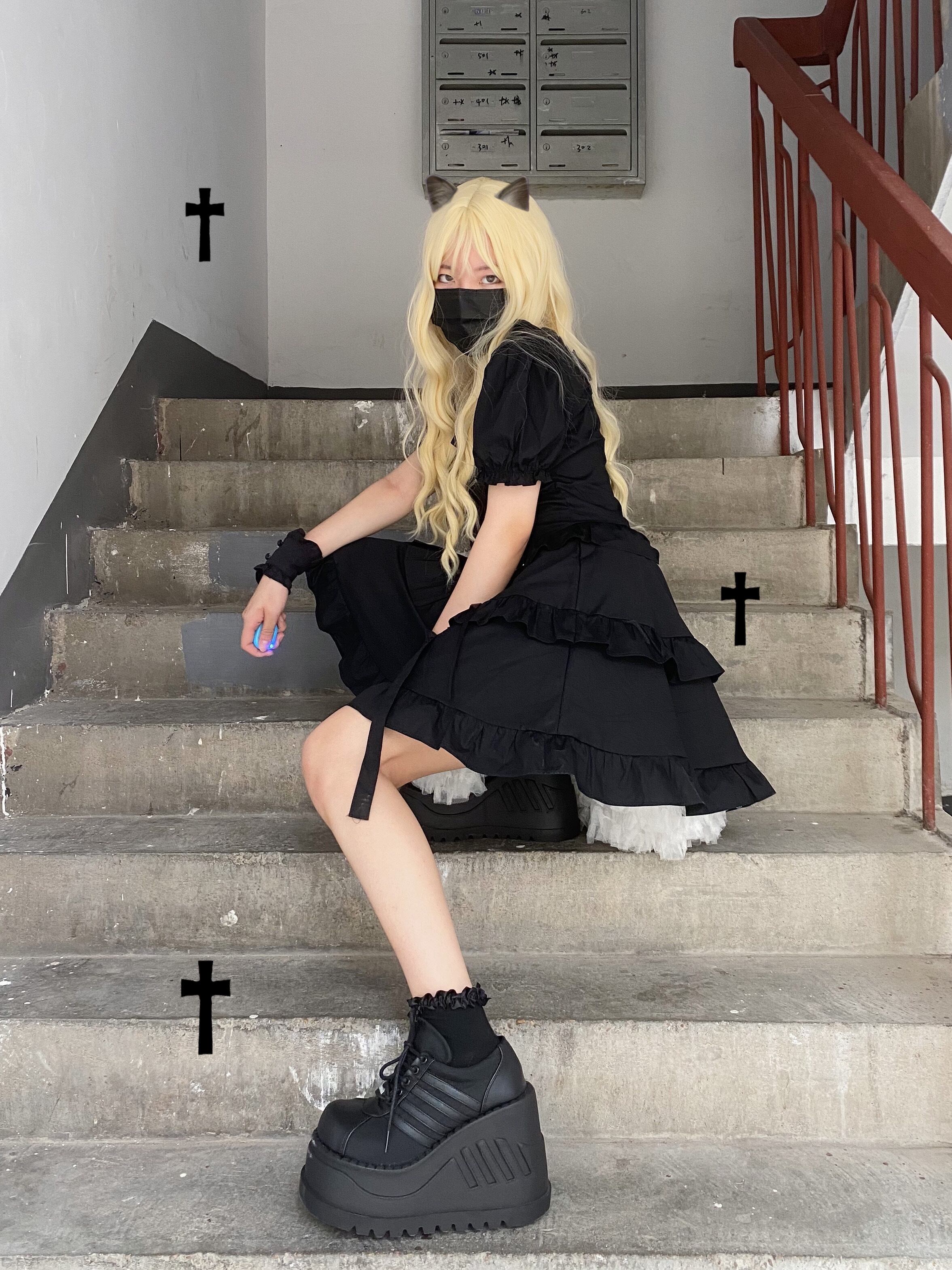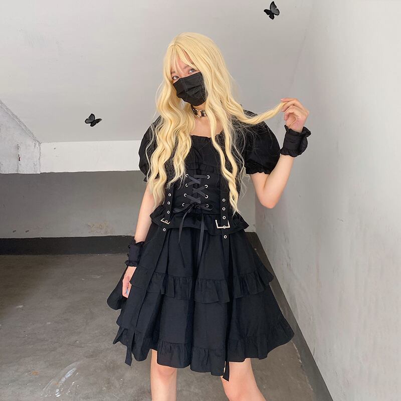 ✞ ダークブラックスリーブストラップ ウエストすっきり☆着痩せ スクウェア ✞ゴスロリ SM ミリ 甘ロリ クラロリ 和ロリ エレガント 黒ロリ 姫ロリ 華ロリ BB-BB9537758