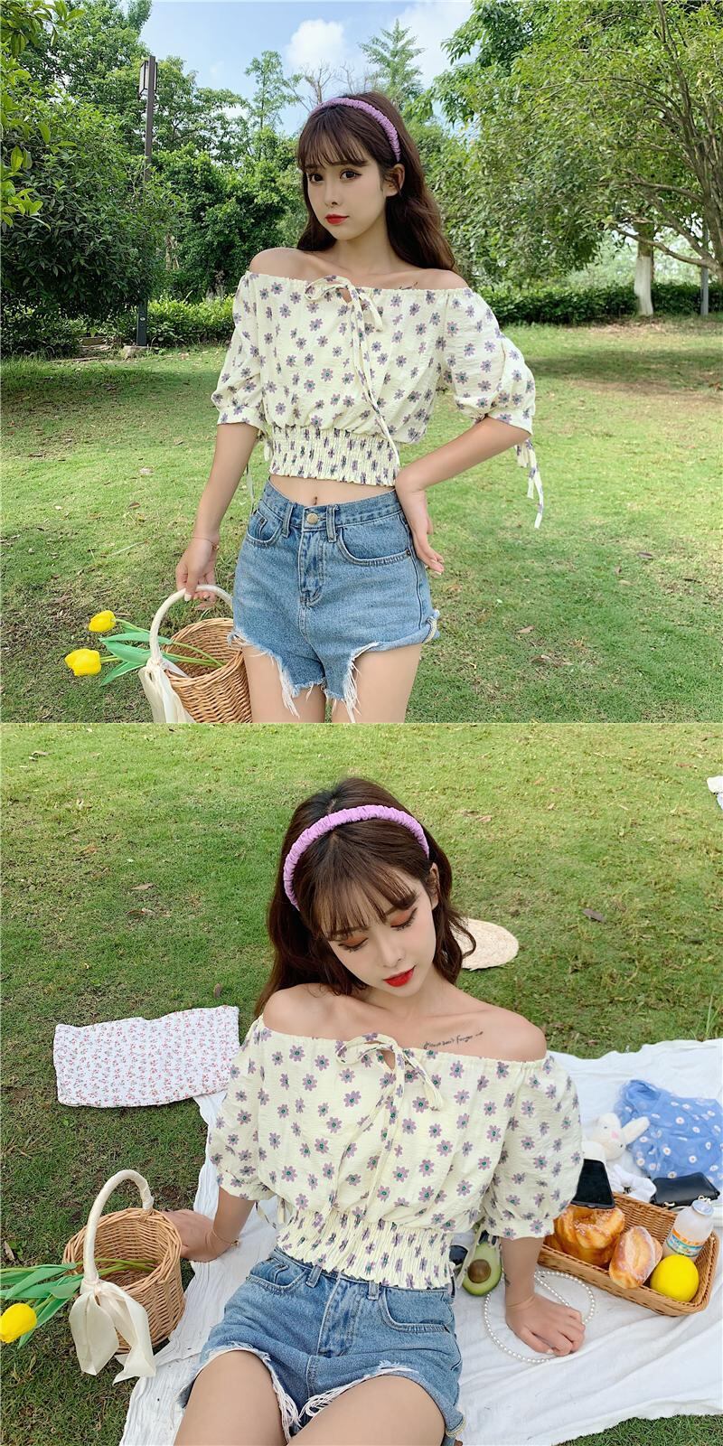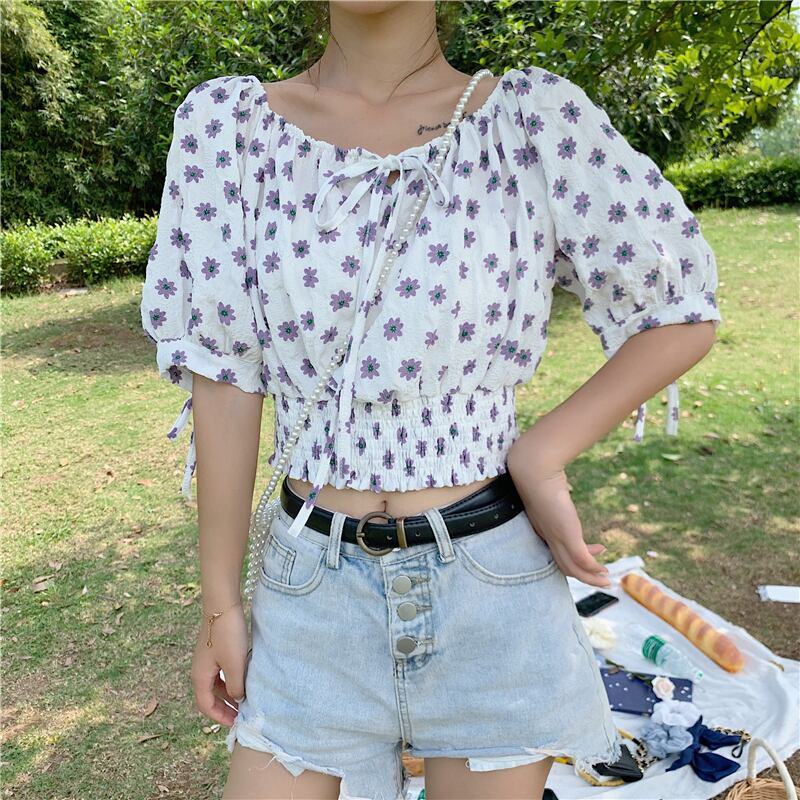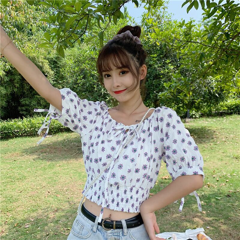 ✞ 花柄プリーツウエストすっきり☆着痩せスリーブショートシャツブラウス スウィート ✞ゴスロリ SM ミリ 甘ロリ クラロリ 和ロリ エレガント 黒ロリ 姫ロリ 華ロリ BB-BB6370646