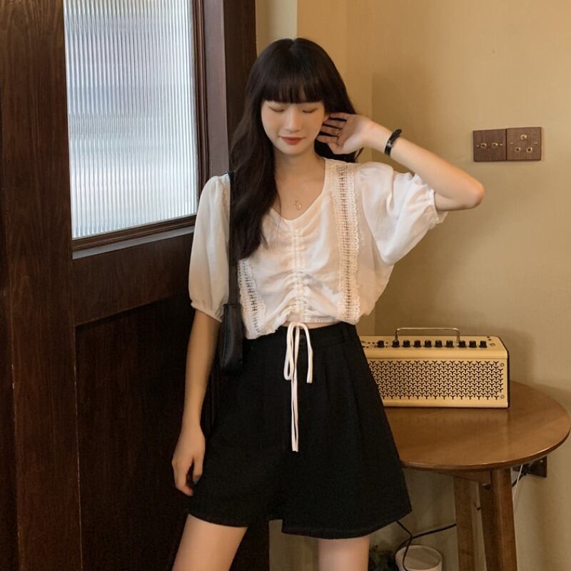 ✞ スタンダードラウンドネックギャザーレーススリーブシャツブラウストップス レトロ ✞ゴスロリ SM ミリ 甘ロリ クラロリ 和ロリ エレガント 黒ロリ 姫ロリ 華ロリ BB-BB8001974