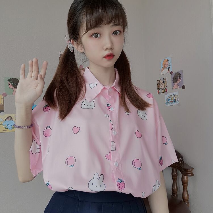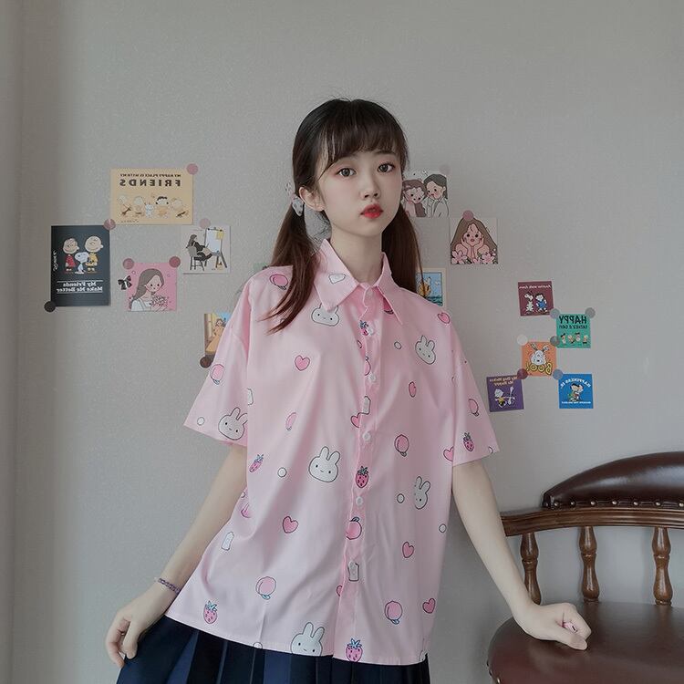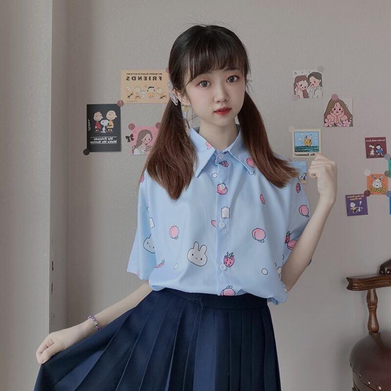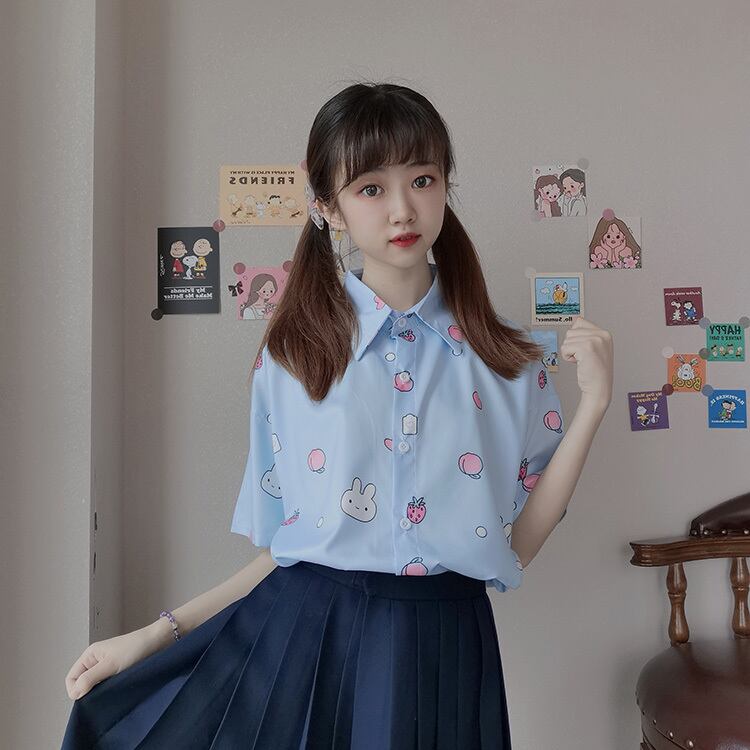 ✞ きれいめ☆プリント柄ルーズスリム半袖スリーブシャツブラウスブラウス サマー ショート スウィート ガーリー 夏物 ✞ゴスロリ SM ミリ 甘ロリ クラロリ 和ロリ エレガント 黒ロリ 姫ロリ 華ロリ BB-BB5143179
