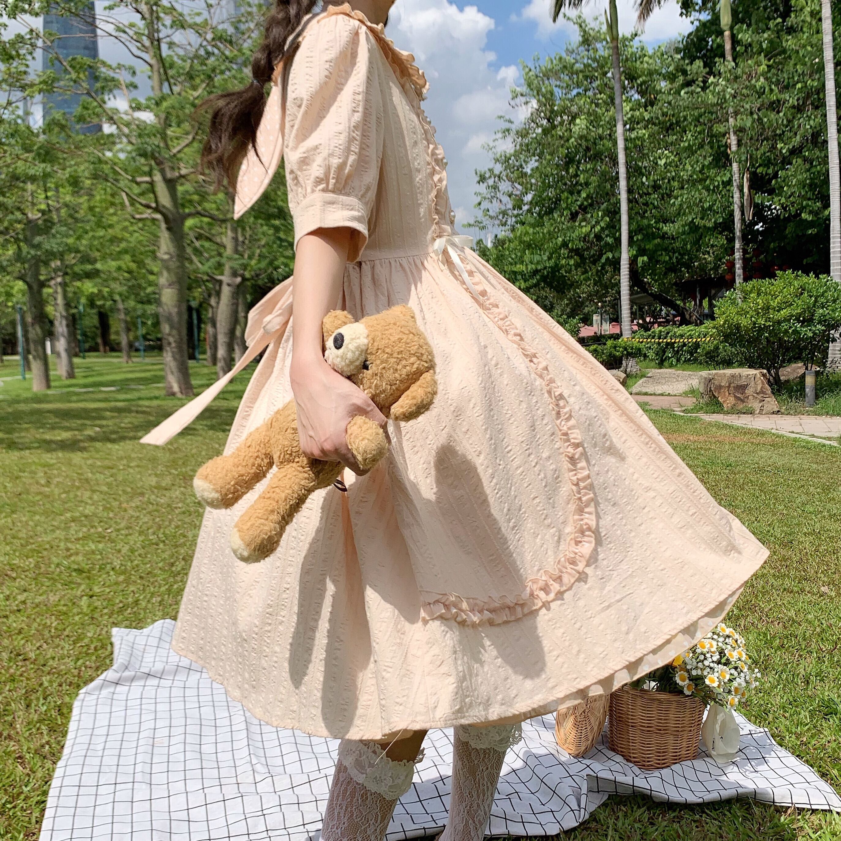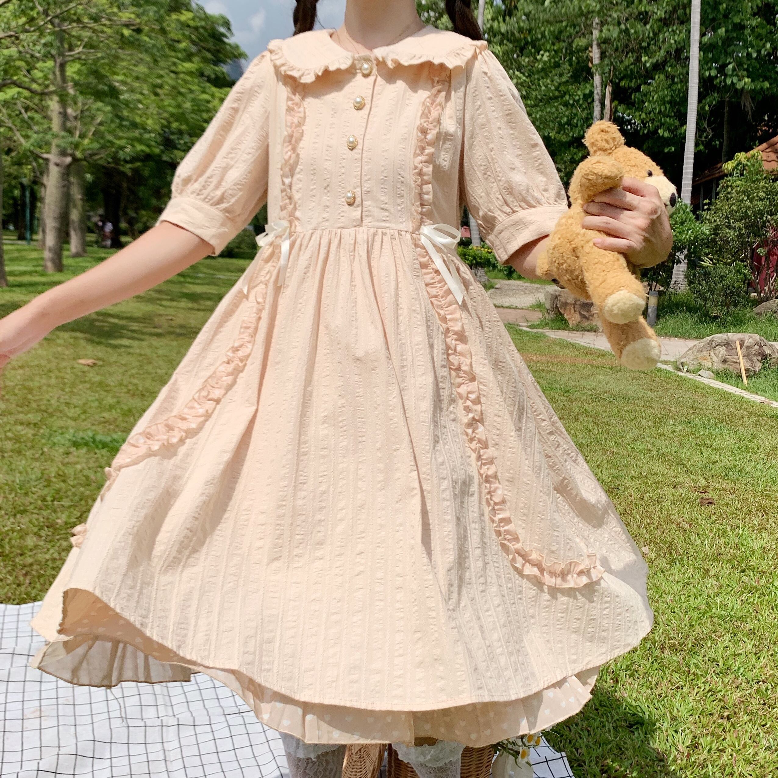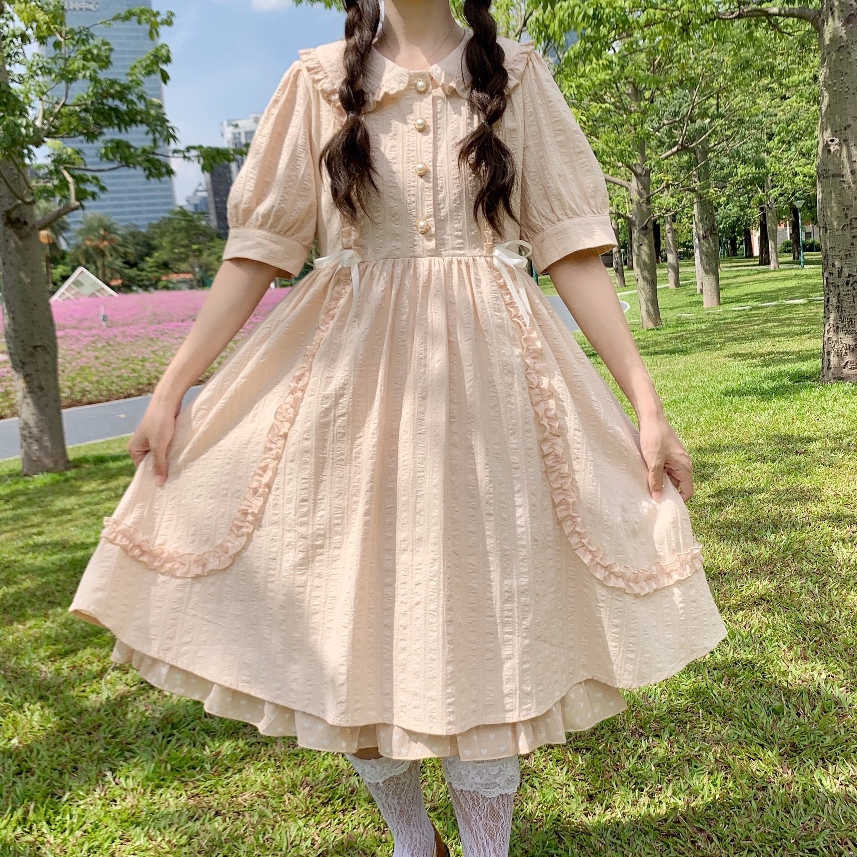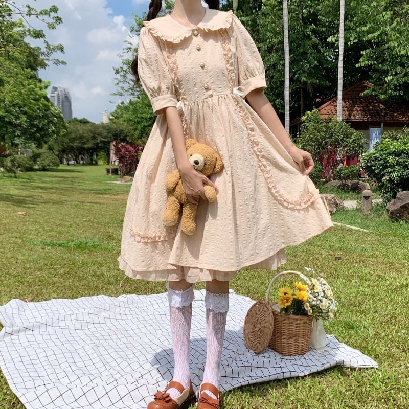 ✞甘めパフスリーブ丸襟フリルステッチワンピースドレスOP ✞ゴスロリ SM ミリ 甘ロリ クラロリ 和ロリ エレガント 黒ロリ 姫ロリ 華ロリ BB-BB8134256