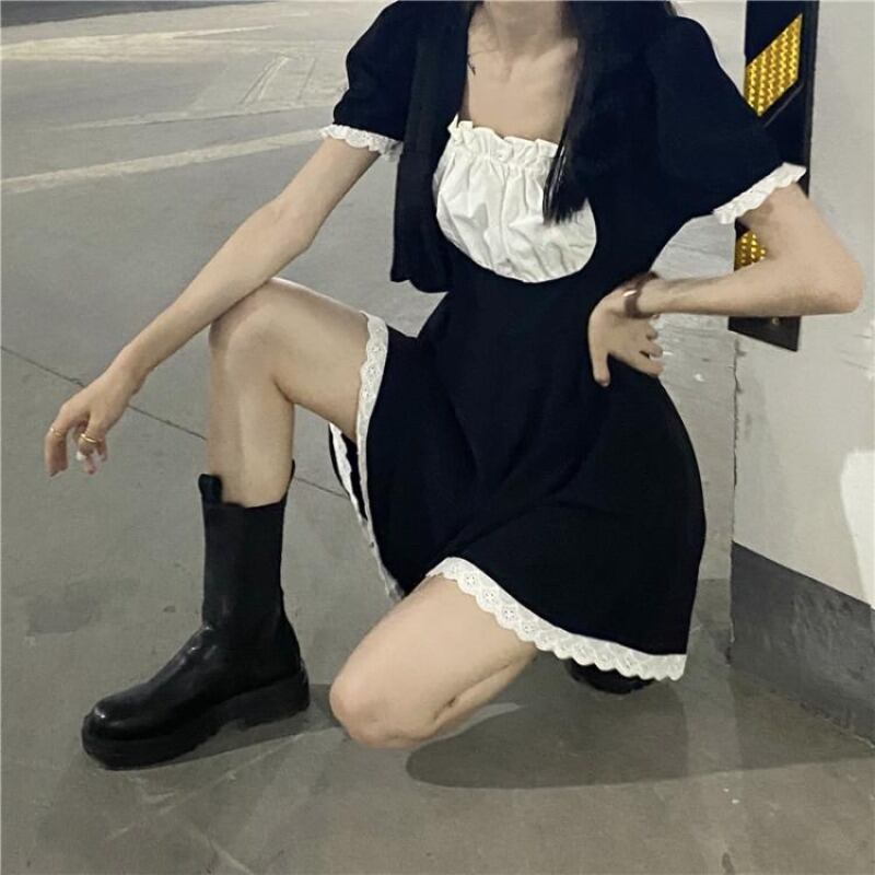 ✞ スタンダードレースウエストすっきり☆着痩せスリーブ レトロ スウィート スクウェア ステッチ ✞ゴスロリ SM ミリ 甘ロリ クラロリ 和ロリ エレガント 黒ロリ 姫ロリ 華ロリ BB-BB1108479