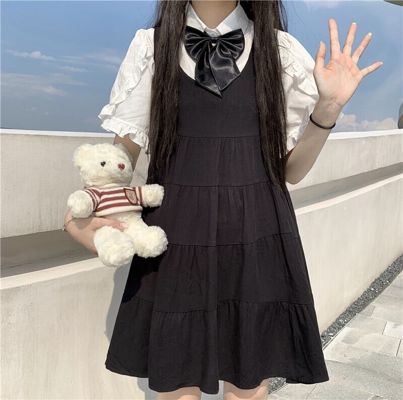 ✞ スリーブ白シャツブラウスリボンブラック ホワイト スウィート ガーリー スカート パニエ ペチコート ✞ゴスロリ SM ミリ 甘ロリ クラロリ 和ロリ エレガント 黒ロリ 姫ロリ 華ロリ BB-BB3255318