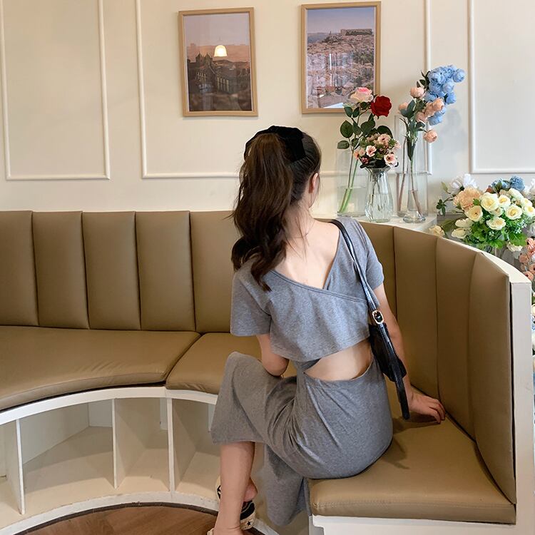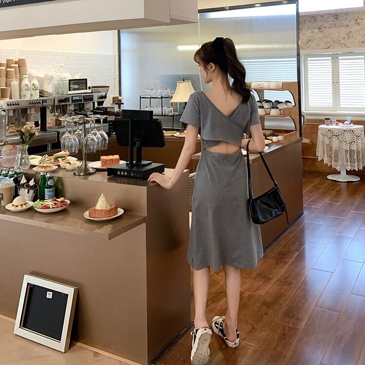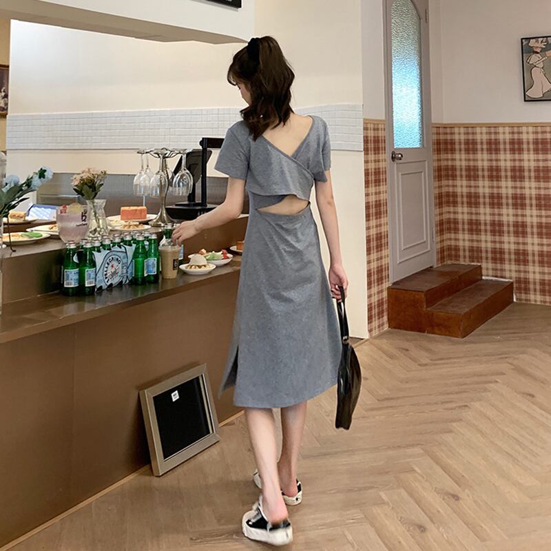 ✞ ドレス ワンピースラウンドネックウエストすっきり☆着痩せスリム♥カワイイ♥クロスバックレスTシャツ スカート ✞ゴスロリ SM ミリ 甘ロリ クラロリ 和ロリ エレガント 黒ロリ 姫ロリ 華ロリ BB-BB7243777