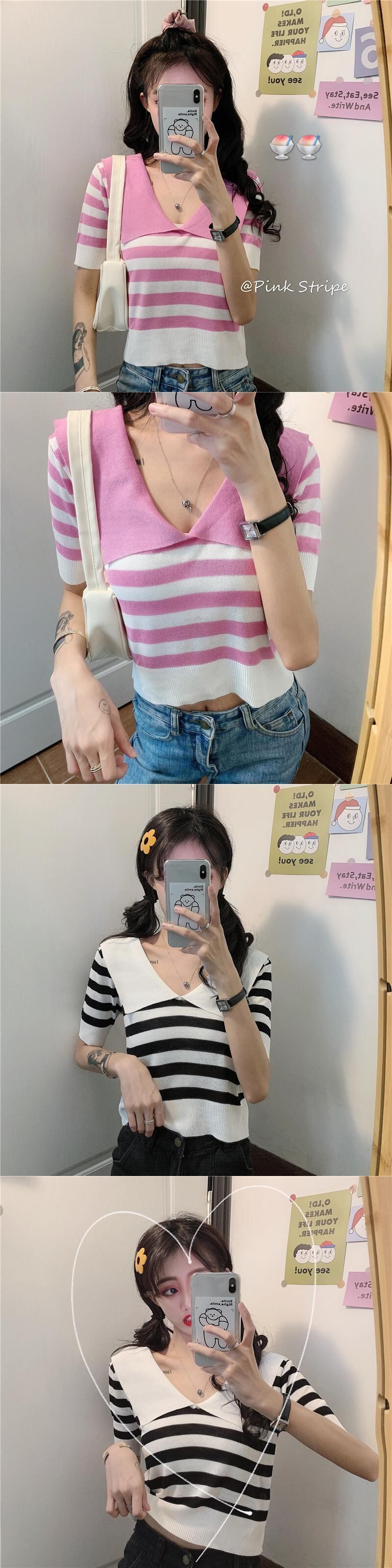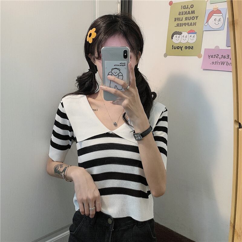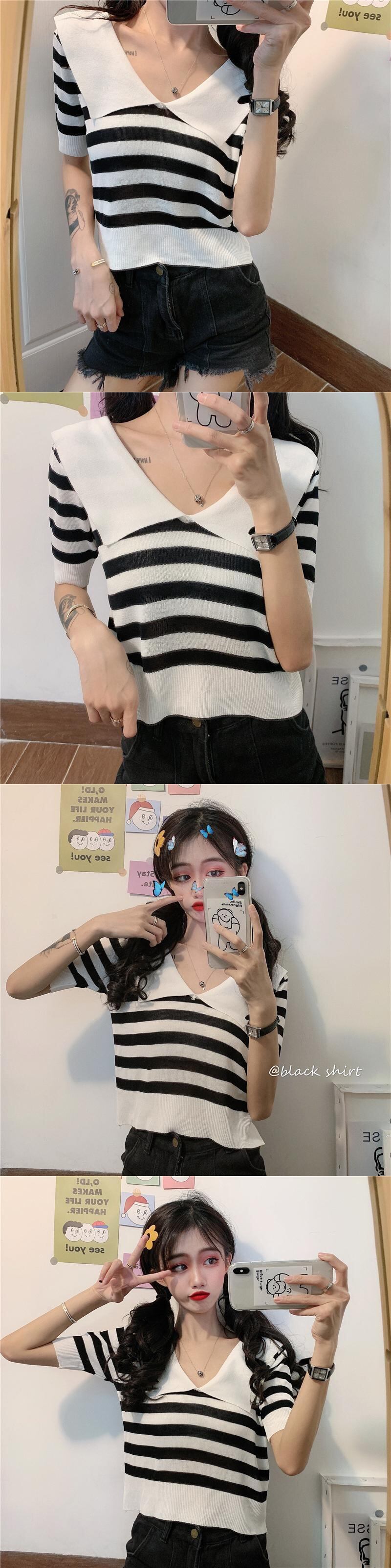 ✞ ニットトップス スタンダードストライプネイビーTシャツ レトロ ✞ゴスロリ SM ミリ 甘ロリ クラロリ 和ロリ エレガント 黒ロリ 姫ロリ 華ロリ BB-BB0278762